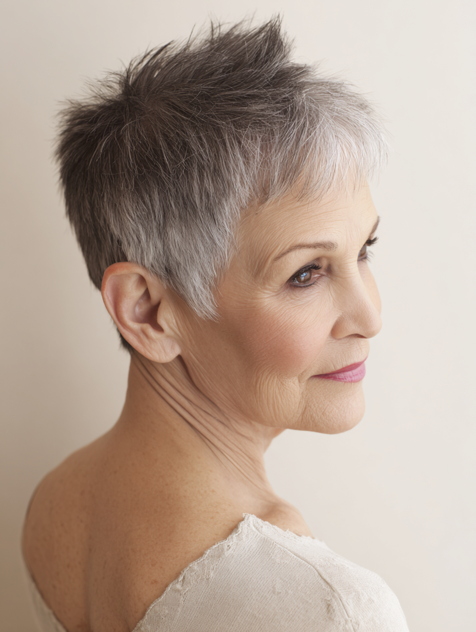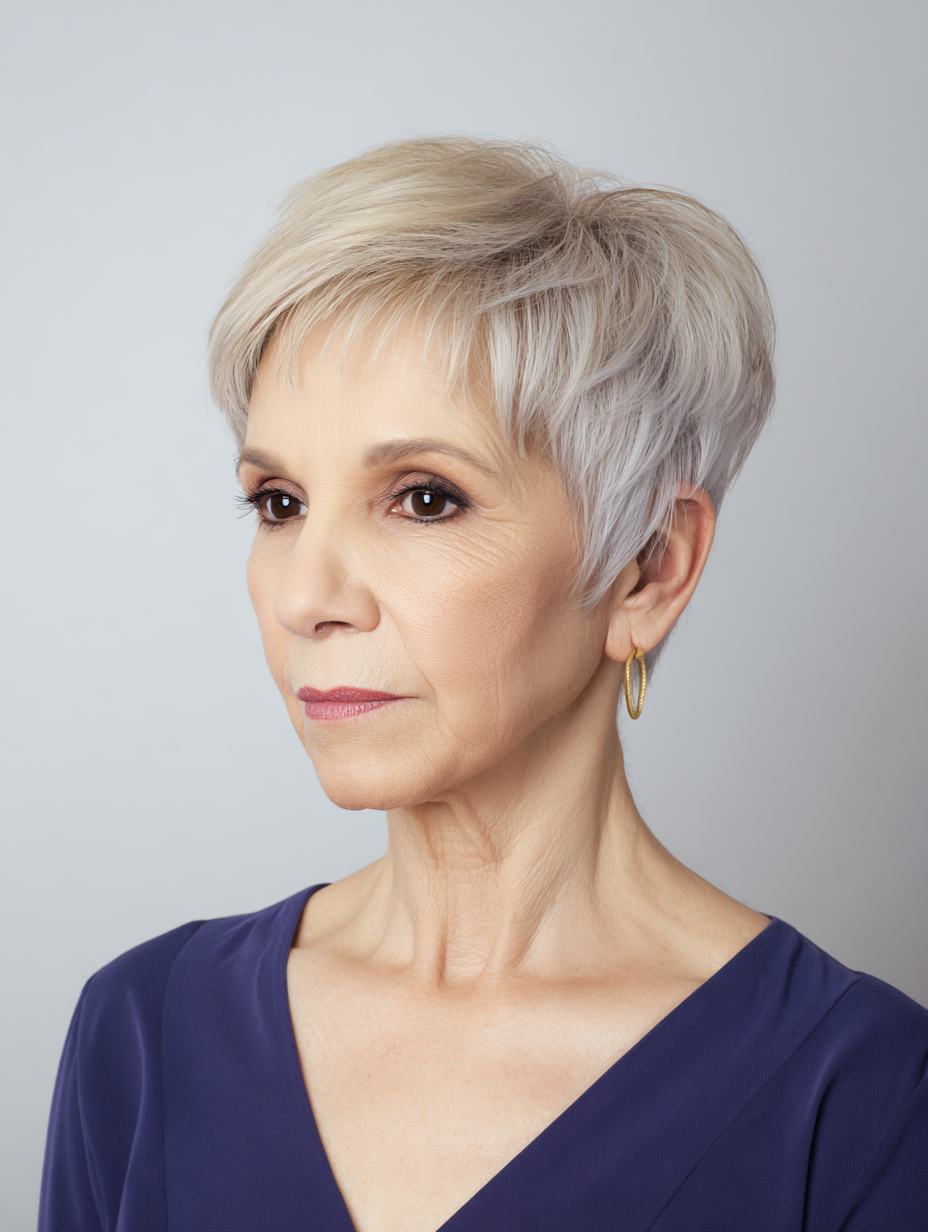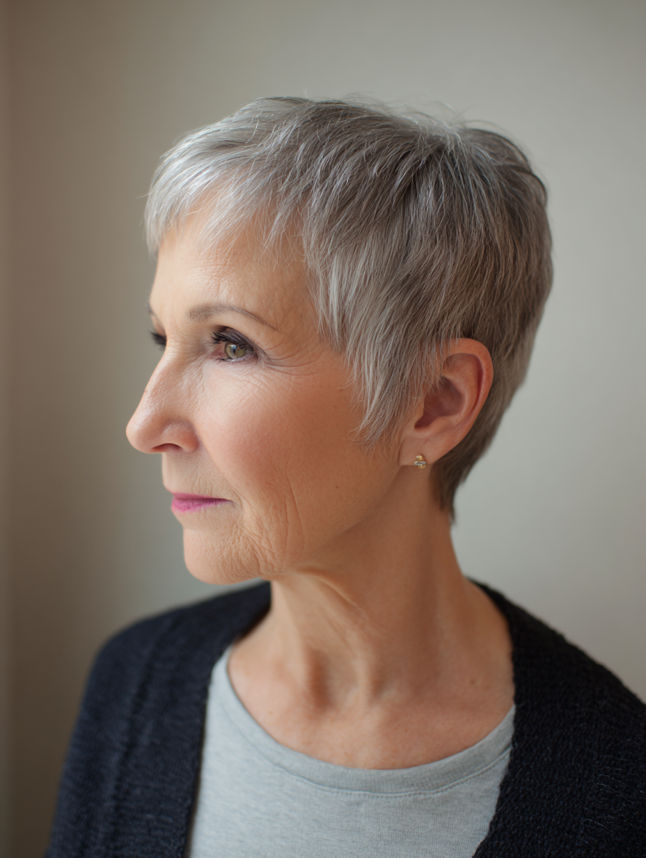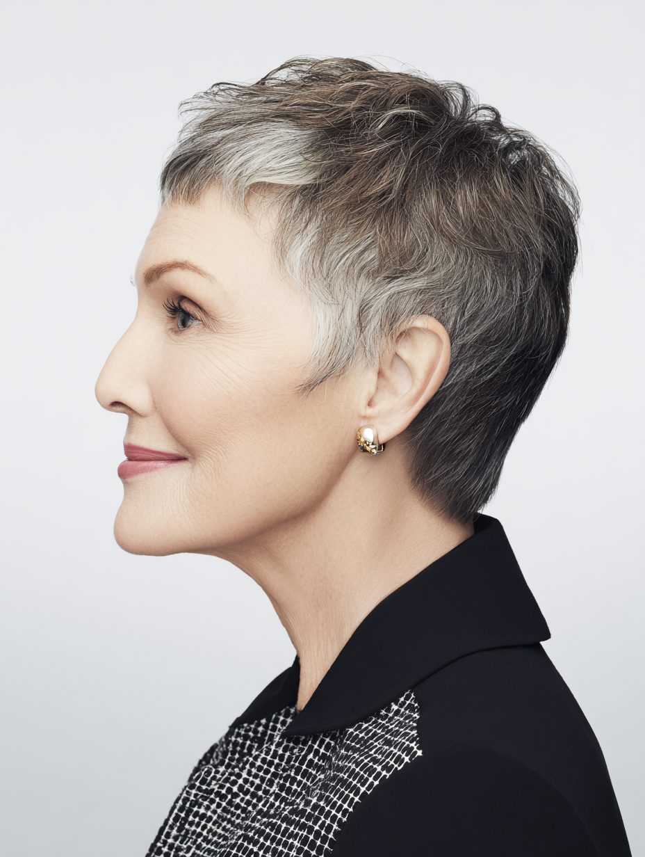 A classic cropped pixie gives older women a clean and confident shape that feels easy to maintain.