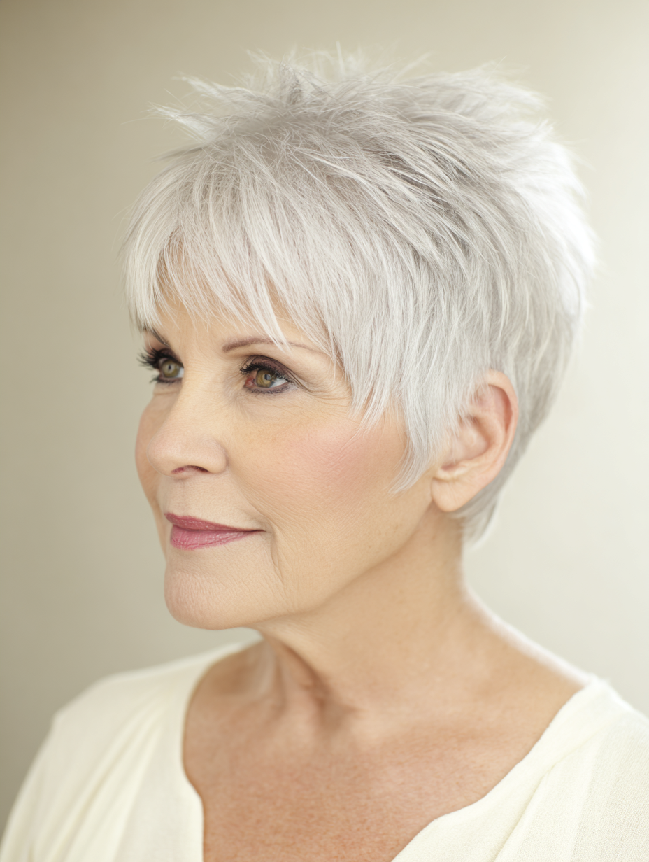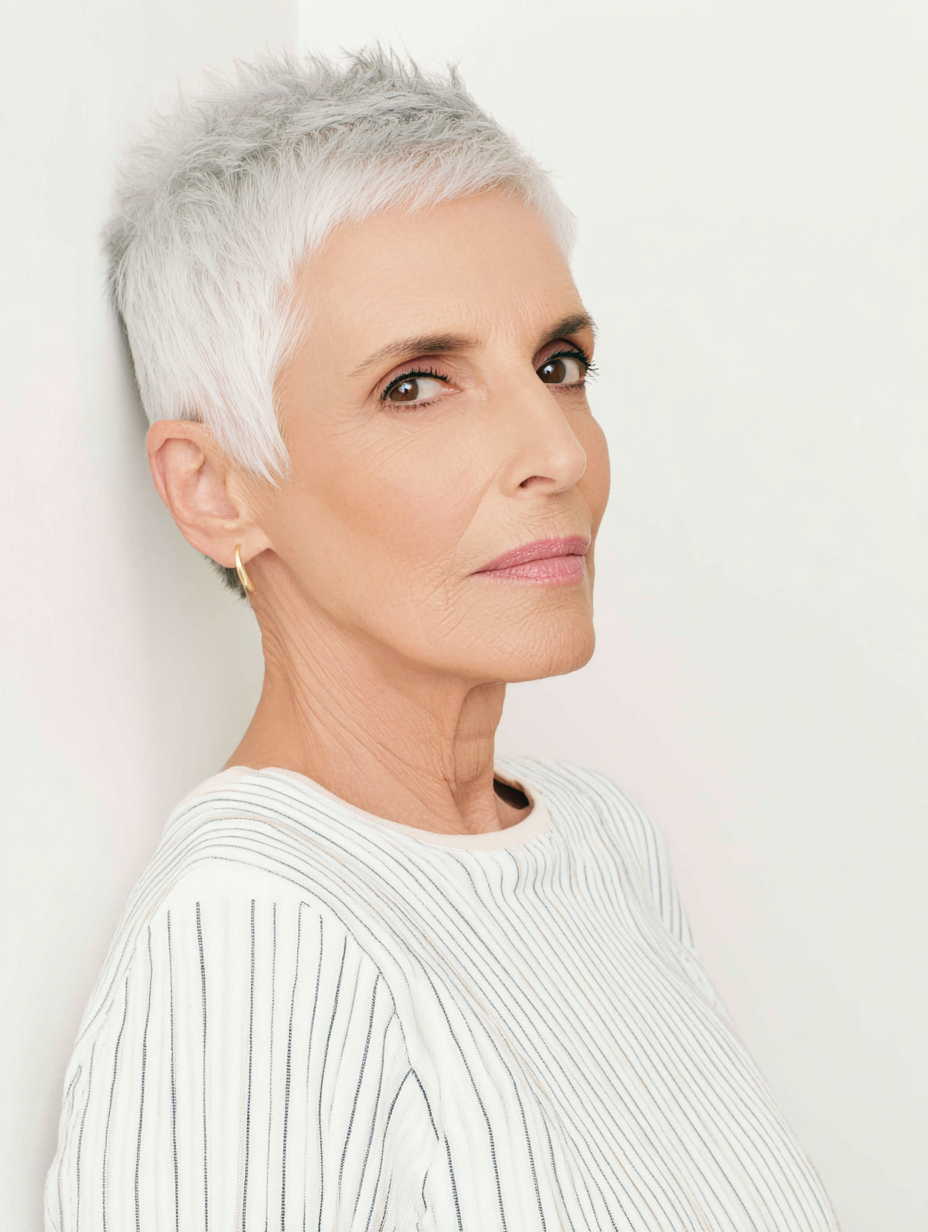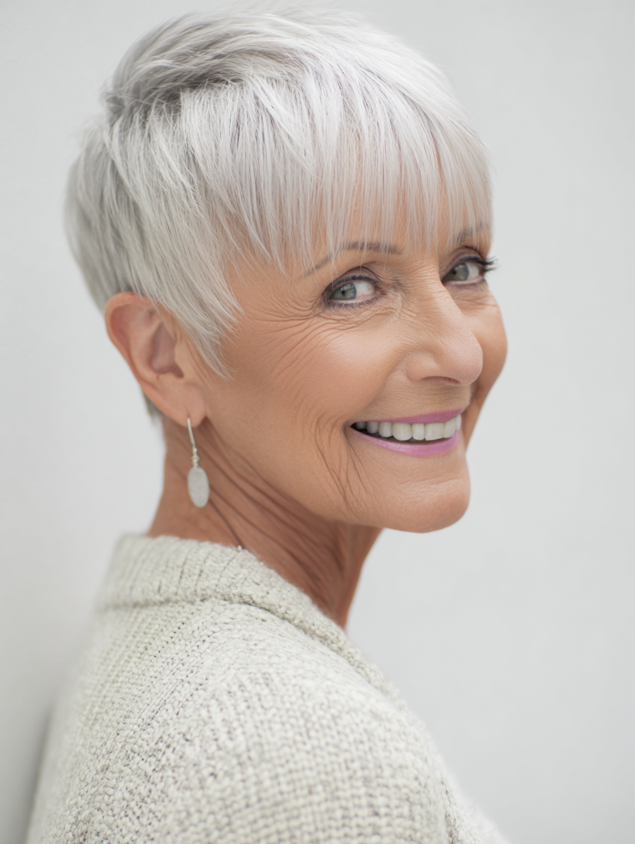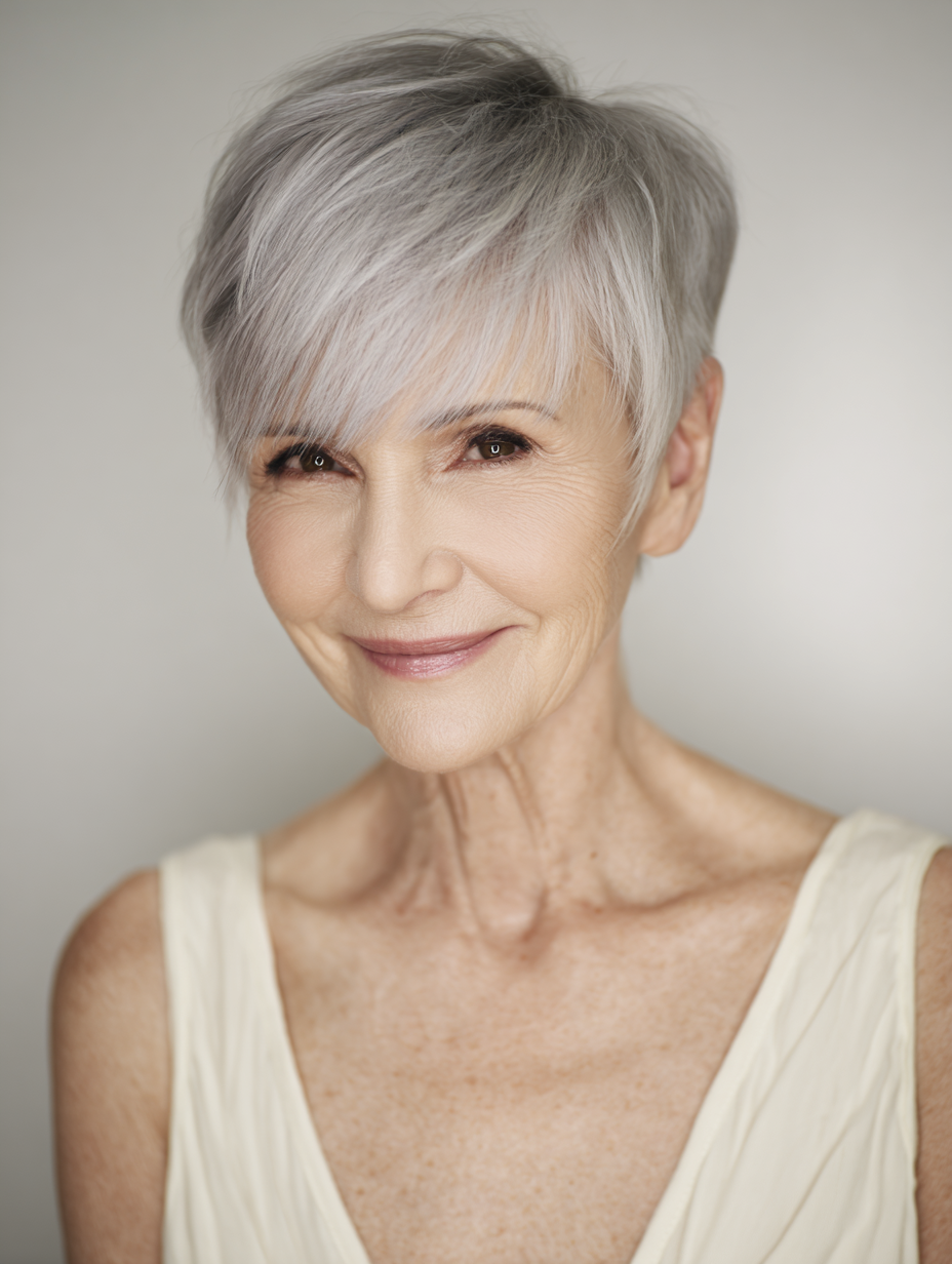 A classic cropped pixie gives older women a clean and confident shape that feels easy to maintain.