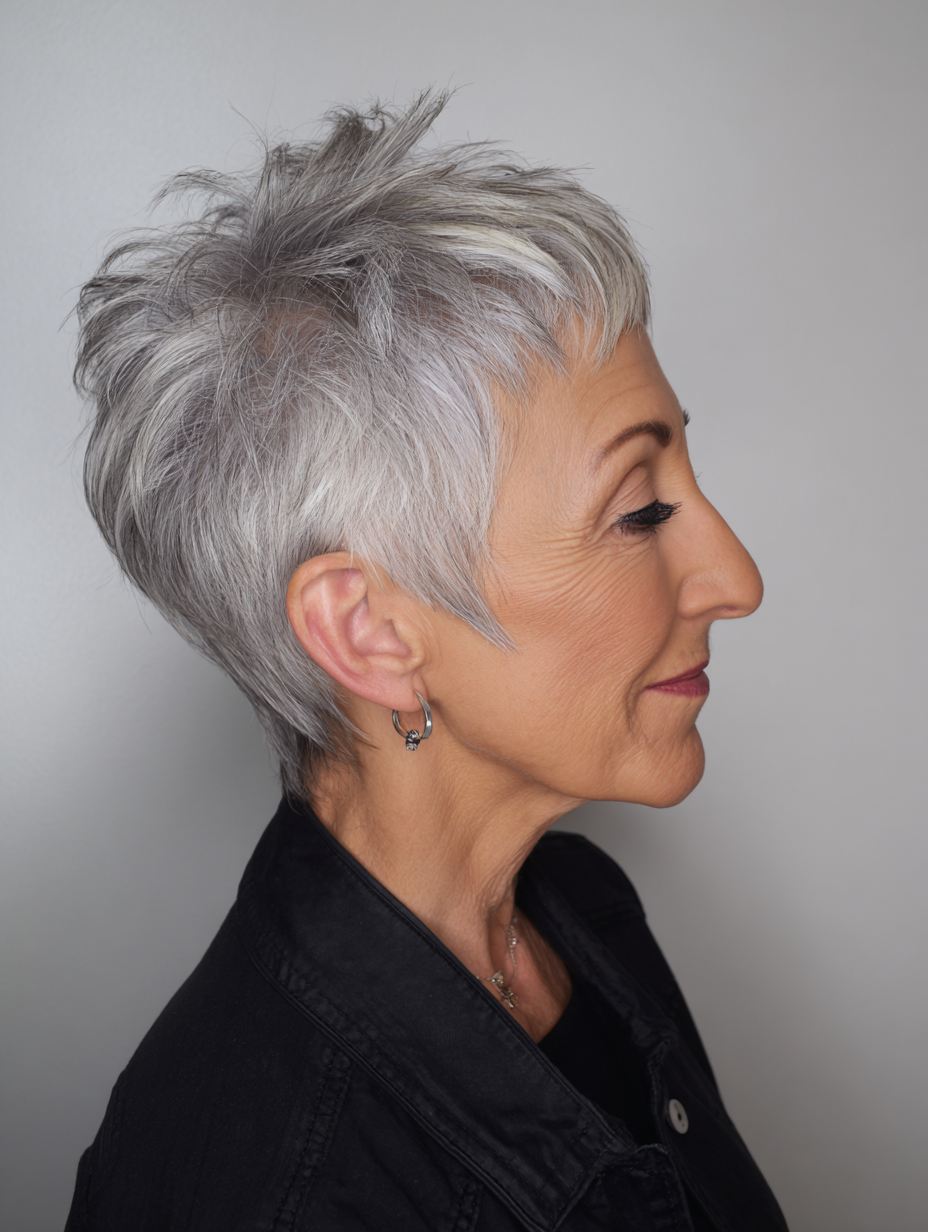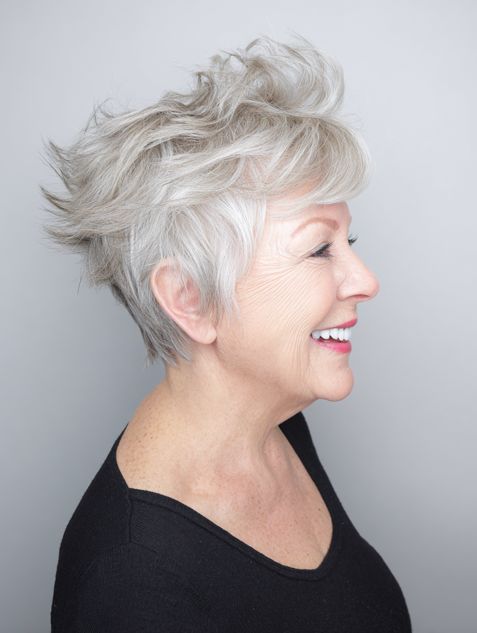 This detail adds charm and a youthful spark that works well for mature women seeking a short haircut with personality and movement.