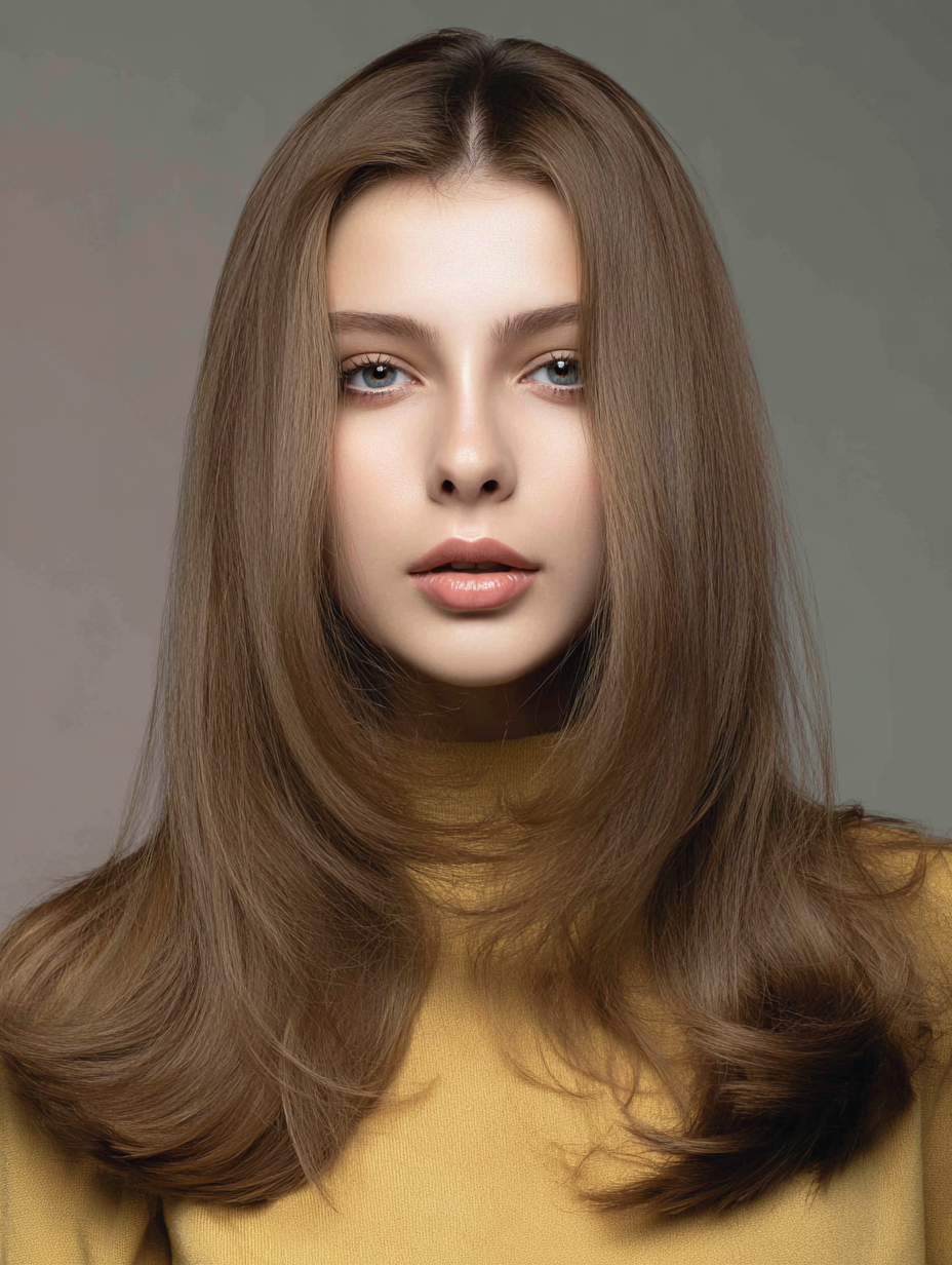 Subtle layering adds movement without making the hair look bulky. A light texturizing spray enhances separation and flow through the lengths.
