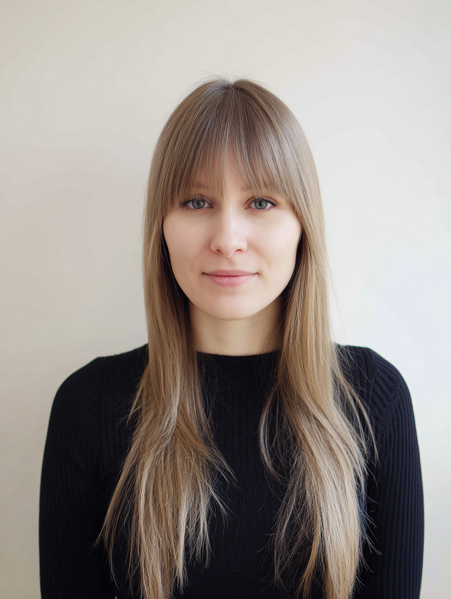 Bottleneck bangs are slightly shorter in the center and longer toward the sides, creating soft vertical framing.