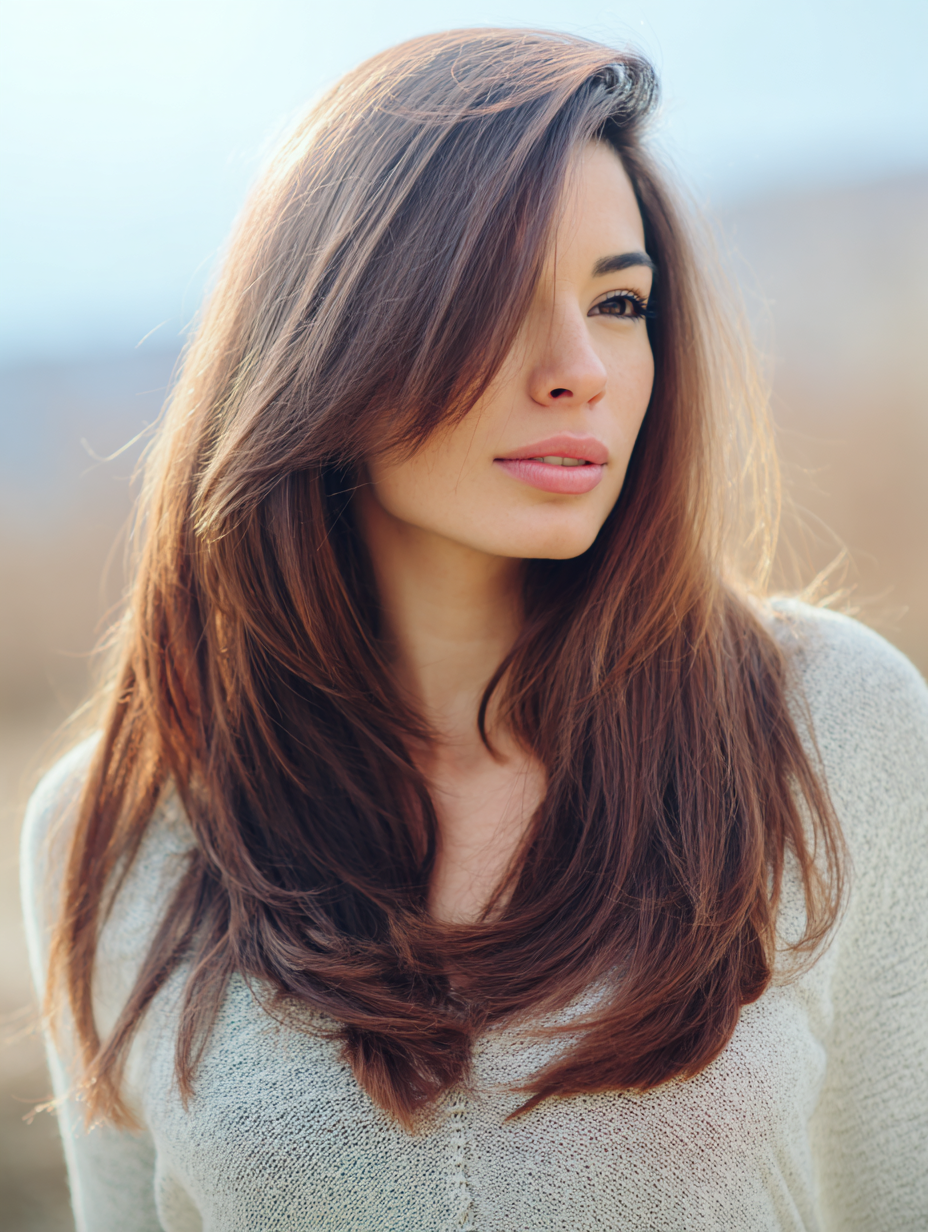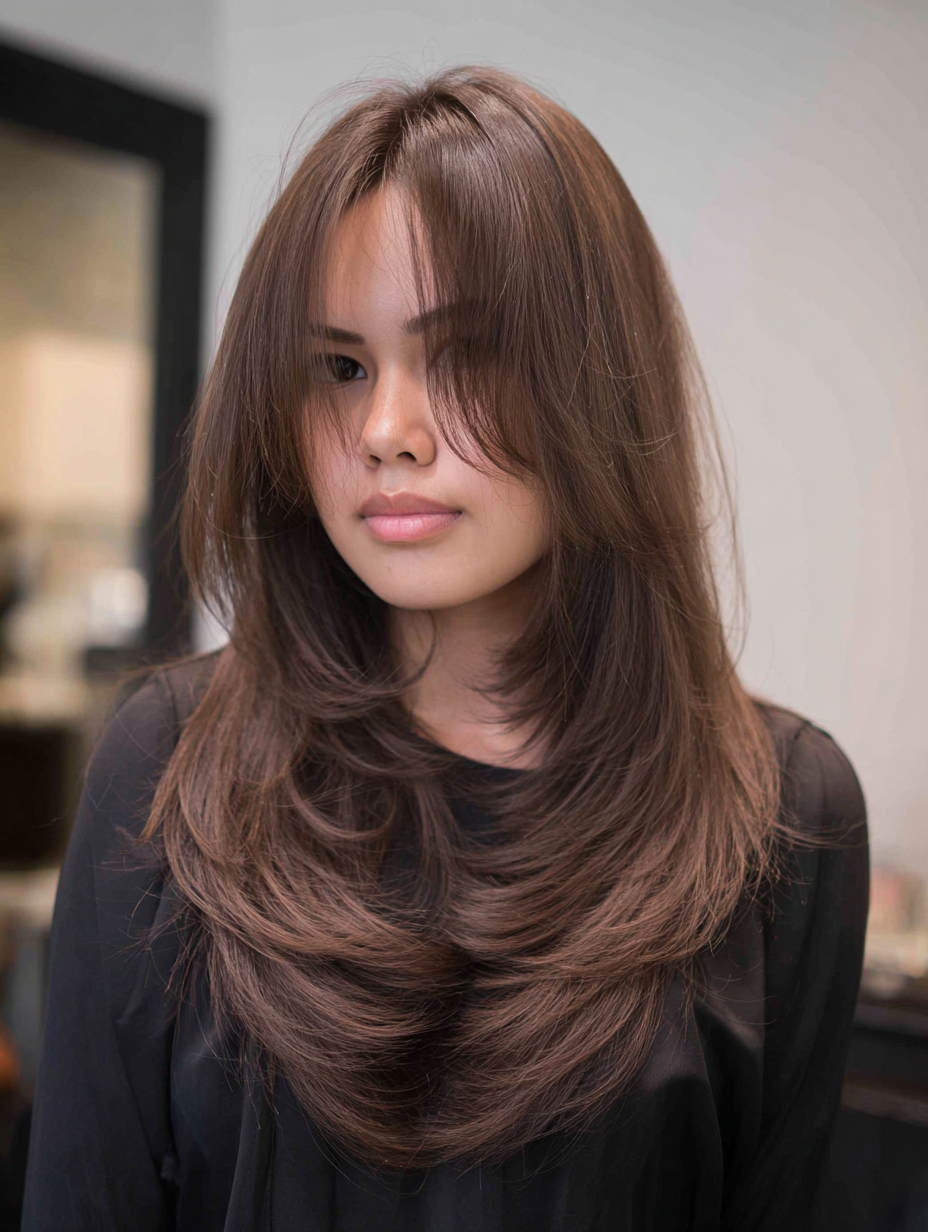 This hairstyle feels balanced, soft, and easy to wear while still giving long hair a purposeful, face shaping effect.