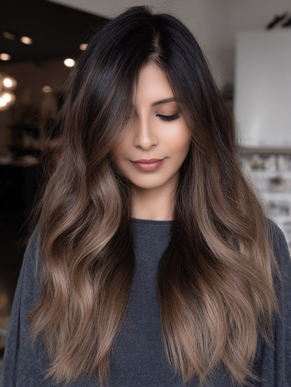 Trimming subtle layers into the ends prevents the look from feeling heavy or lifeless. A smoothing serum boosts shine and keeps flyaways under control.