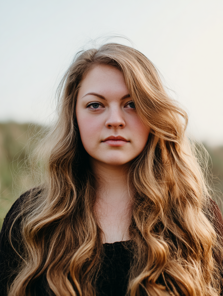 Loose, undone waves give long hair natural movement that pairs well with round facial features.