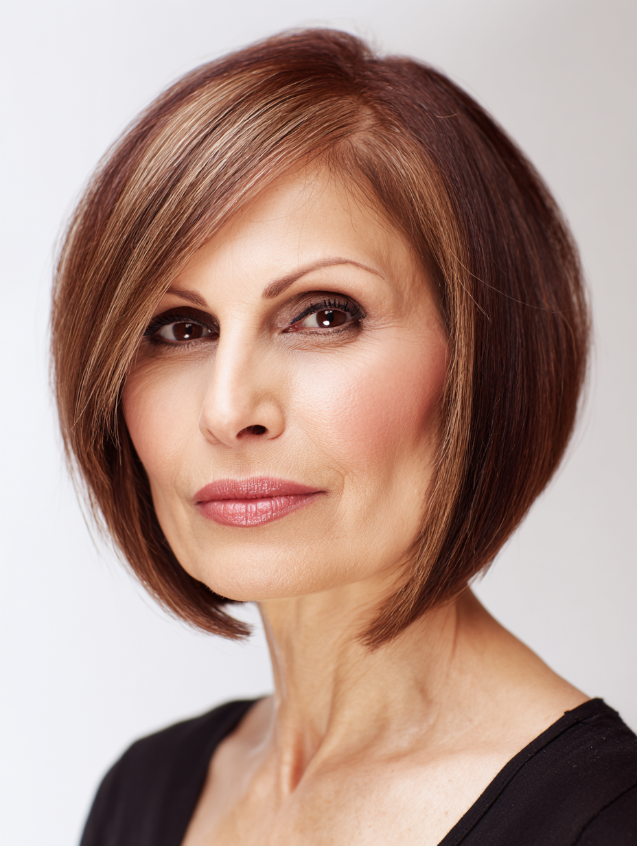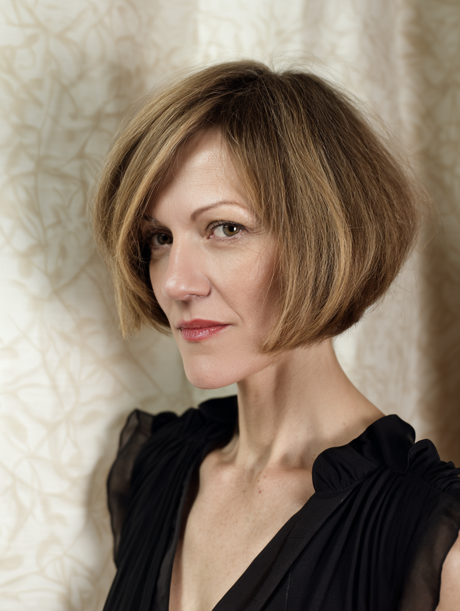 This cut works well for straight or slightly wavy hair. Styling stays simple with smoothing cream or light texture spray. The shape holds well between trims, offering a confident, no nonsense look with subtle sass.