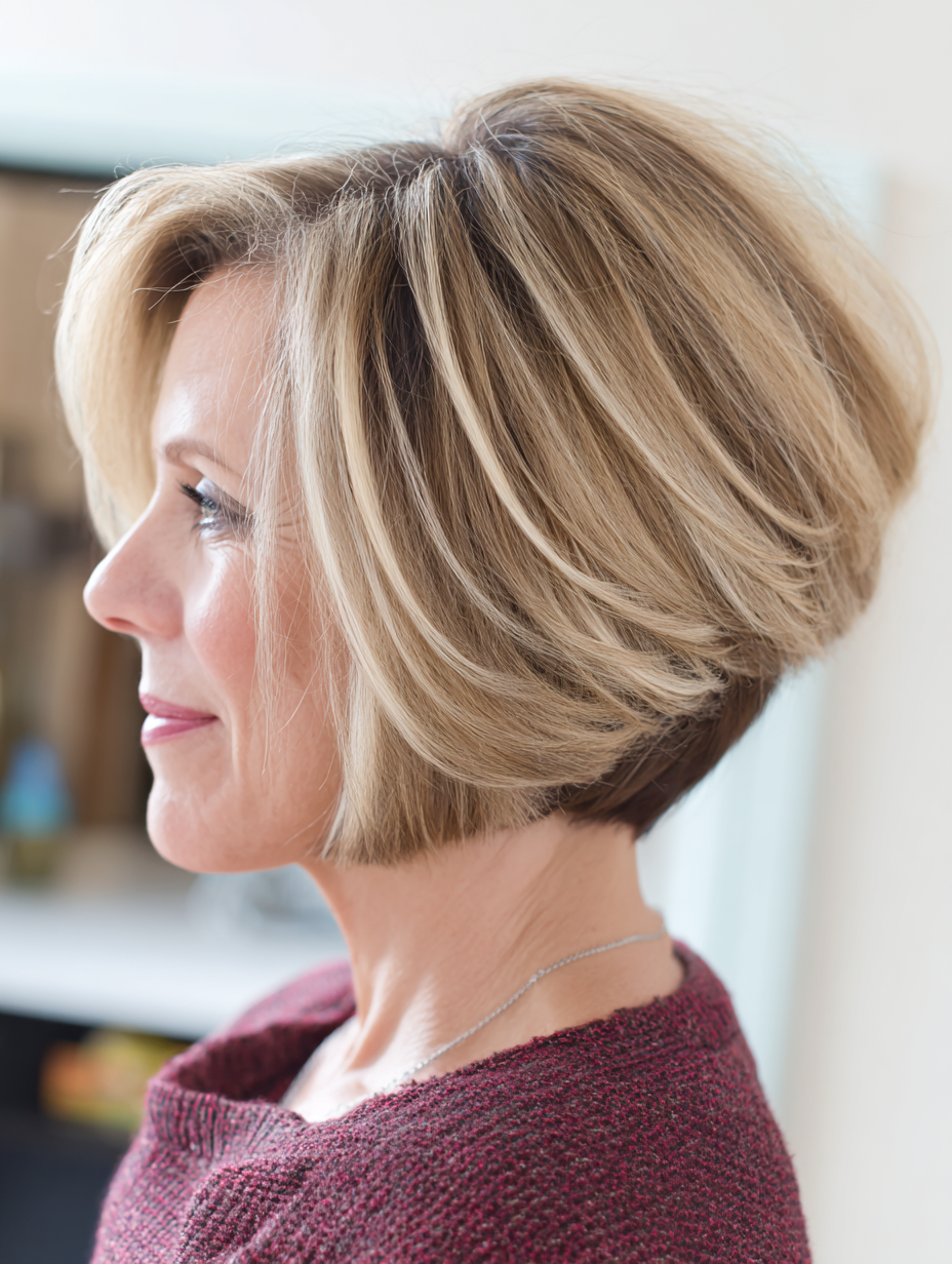 Layers stack strategically to lift the crown while keeping the ends light. This cut works especially well for women whose hair feels flat or lifeless.