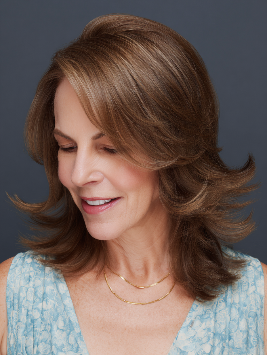 This haircut works well for women who want movement without losing styling options. It responds beautifully to blowouts, rollers, or loose waves. The length stays practical for busy schedules.