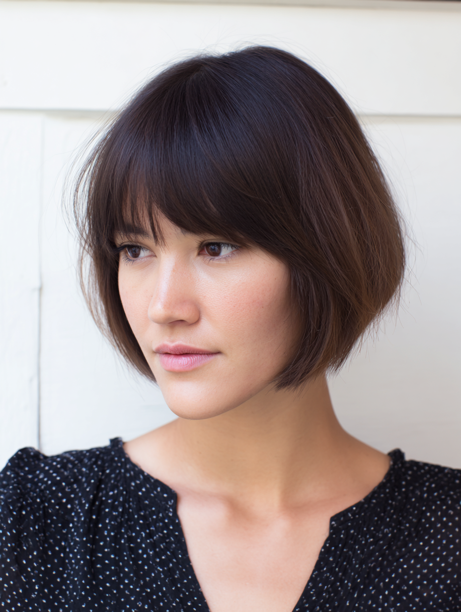 Rounded Bob with Full Straight Bangs
