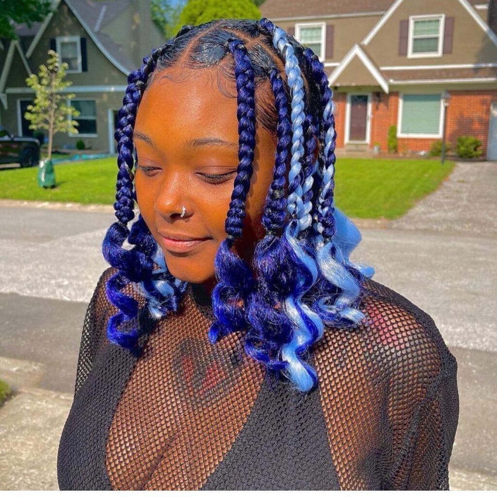 Blue and Icy Ombre Curly Box Braids
