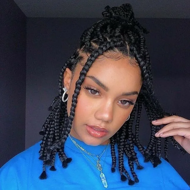 Chin-Length Box Braid Bob