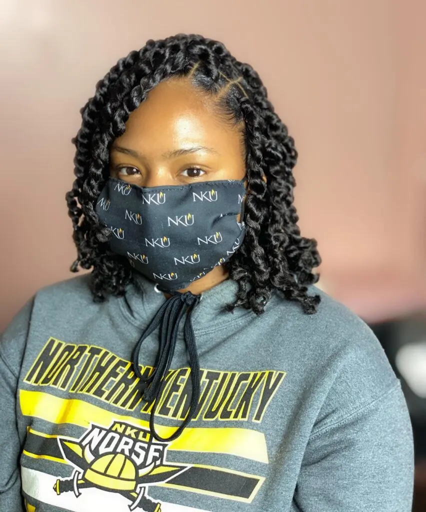 The twists are moderately thick and coiled at the ends, offering a touch of bounce and movement. This hairstyle blends structure with effortless charm, making it suitable for both everyday wear and special occasions. It’s a great protective style that maintains volume without sacrificing comfort or versatility.
