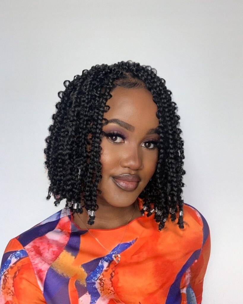 The ends are secured with a twist, and a few braids are accented with small beads for a playful finish. This protective style frames the face effortlessly and works well for everyday wear. It’s simple, stylish, and perfect for anyone who loves low-fuss beauty.