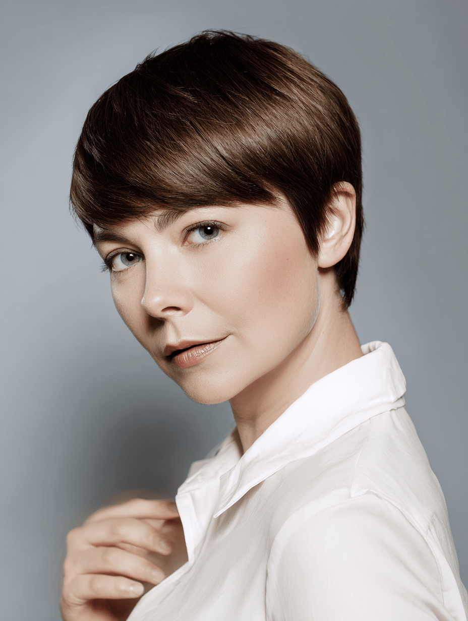 A minimalist straight pixie focuses on clean lines and simplicity. Straight hair enhances the sharpness of the cut, keeping everything smooth and defined.