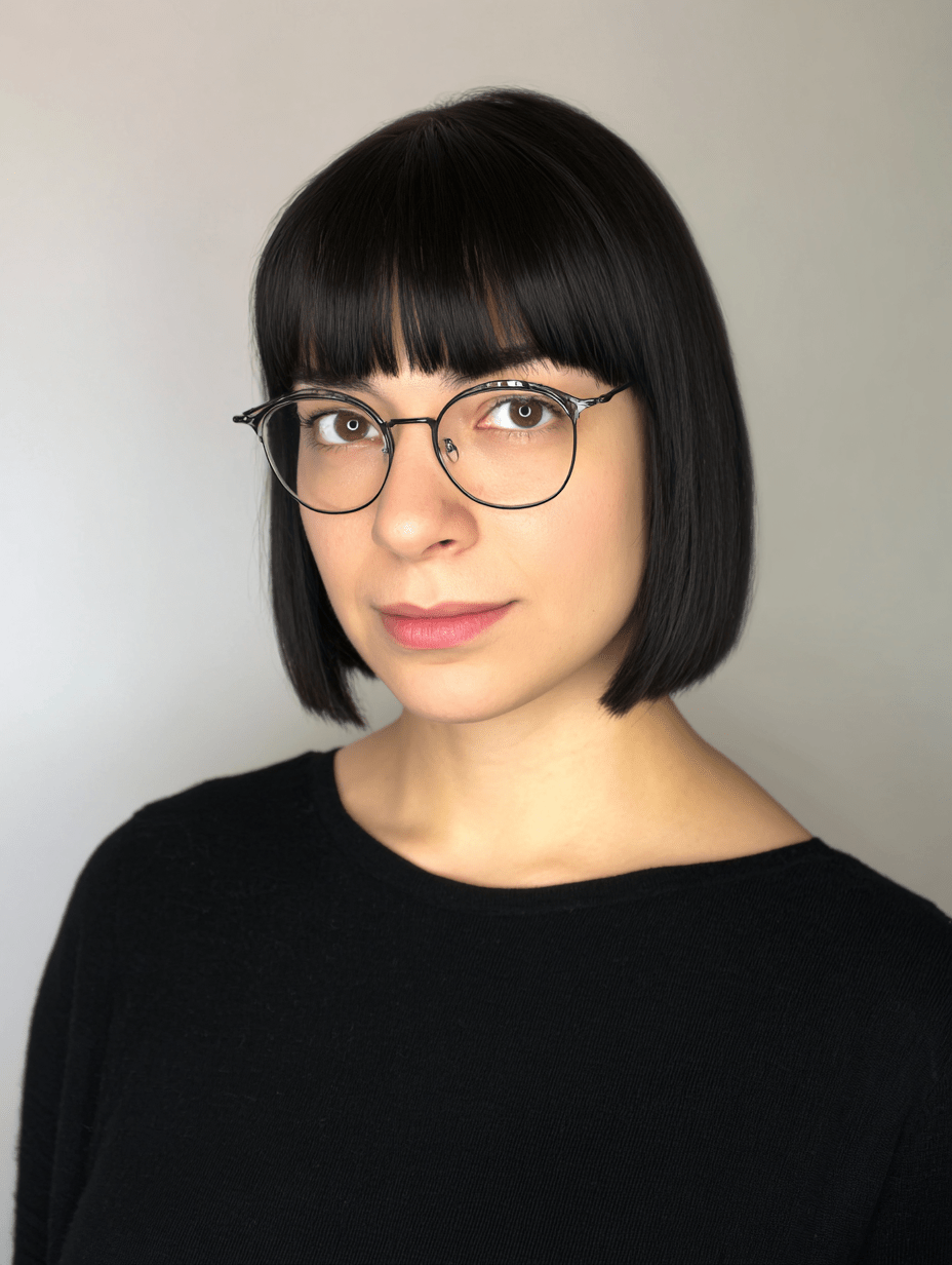 A short bob with soft bangs brings balance and warmth to straight hair.