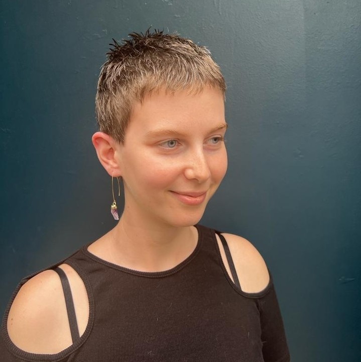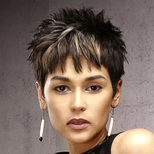 This spiky textured pixie is a daring yet flattering style that suits oval faces by emphasizing sharp, defined features. The choppy layers create volume and movement, giving the cut an edgy, playful vibe.