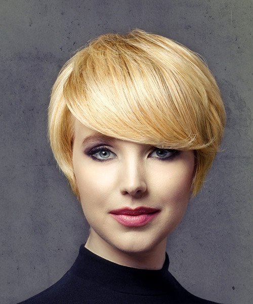 Polished Blonde Pixie with Side-Swept Bangs