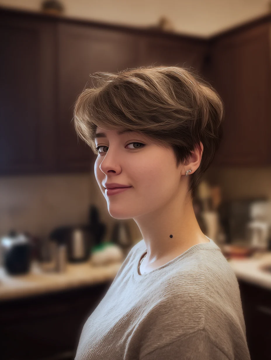 This style works for anyone who wants a short haircut that feels lively without becoming difficult to manage. The final look remains calm, clear, and naturally structured.
