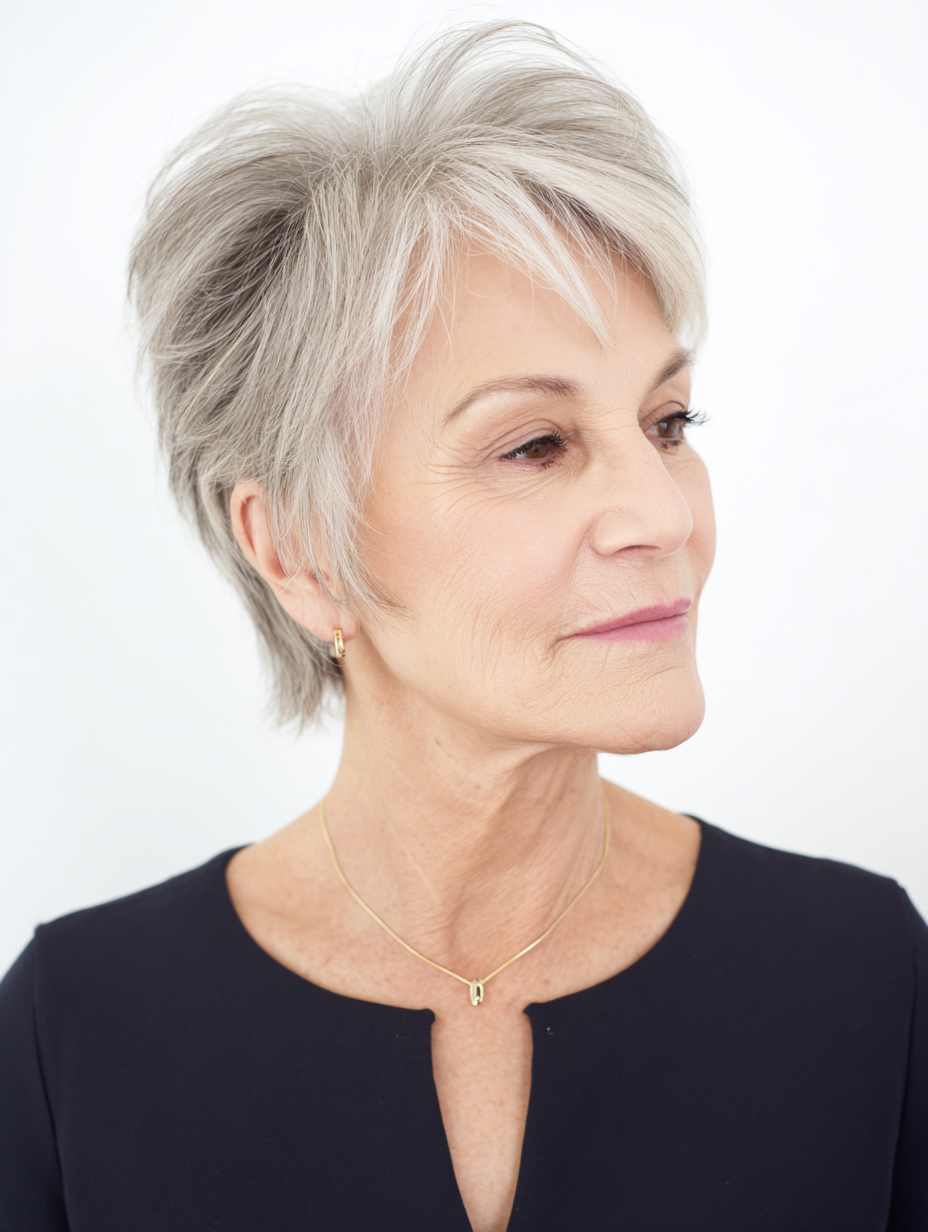 Short layered hairstyles offer an easy, flattering way to add movement, softness, and volume as hair naturally changes.