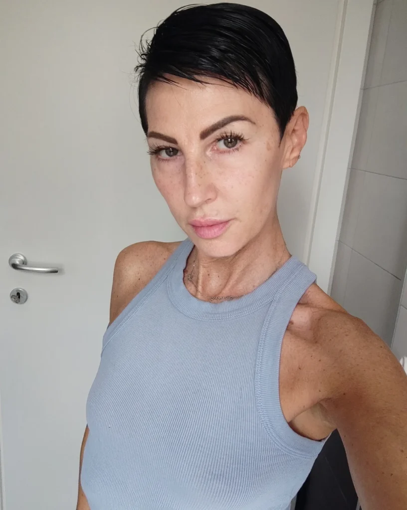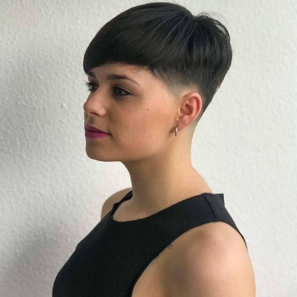 It’s a confident, low-maintenance style that emphasizes facial features beautifully and suits a wide range of personal styles. Perfect for those who love striking, no-fuss haircuts with modern flair.