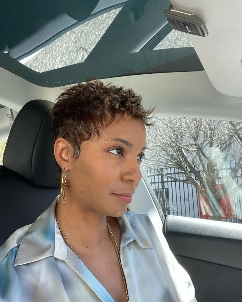 It’s a versatile and modern look that flatters most face shapes and works beautifully with naturally curly or coily textures.