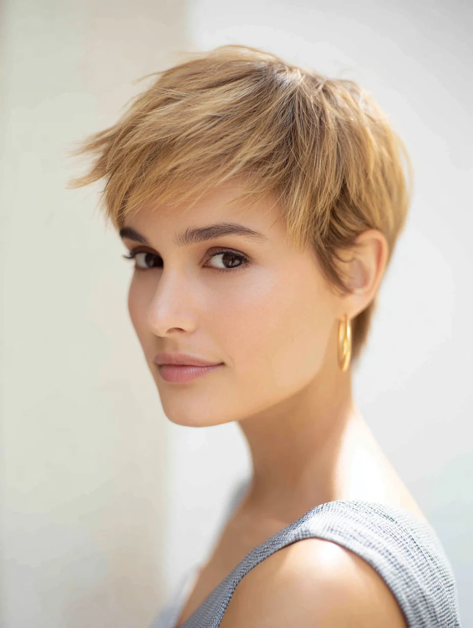 This pixie feels modern, elegant, and versatile for both casual and polished looks.