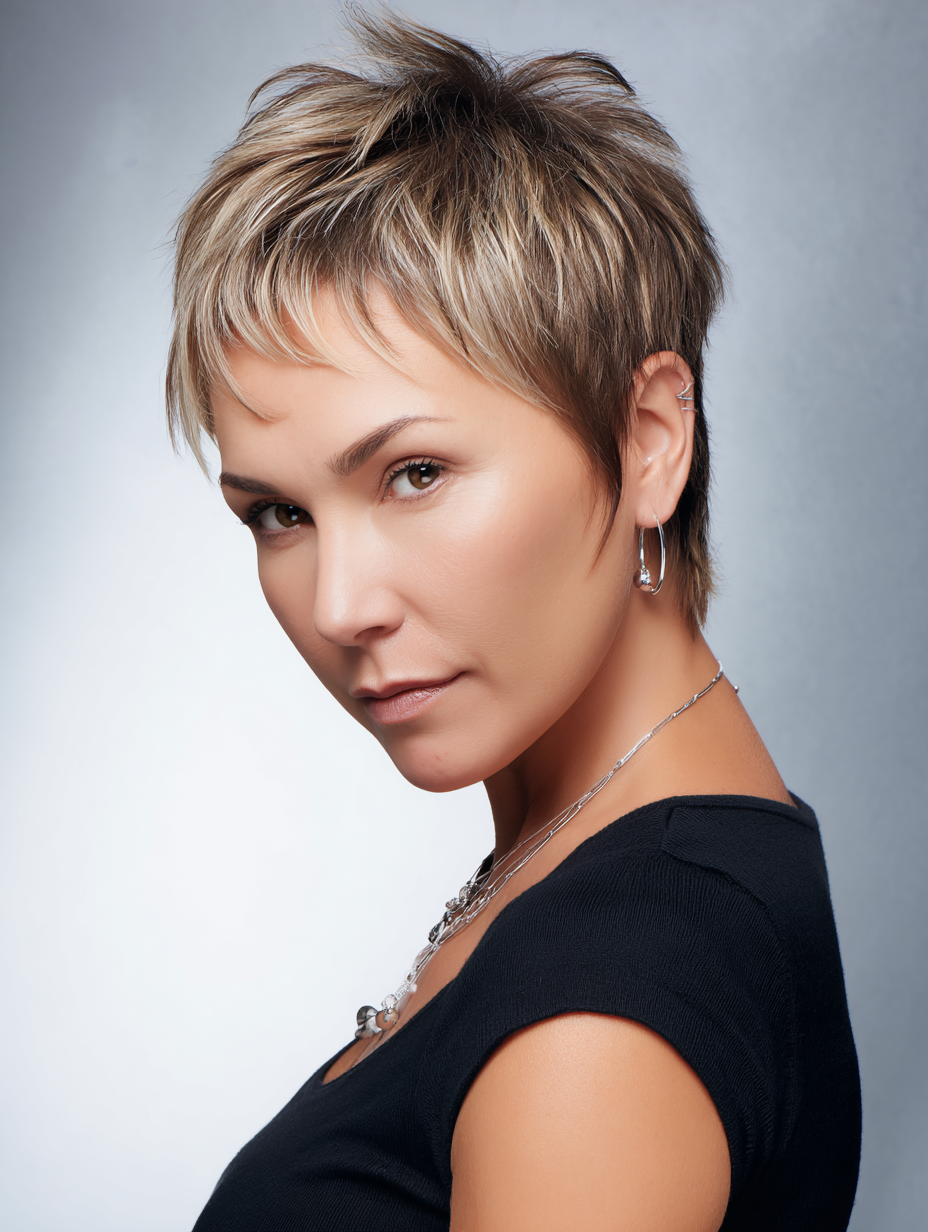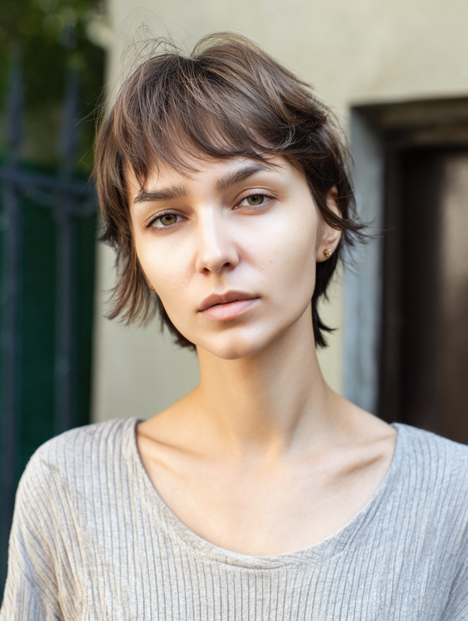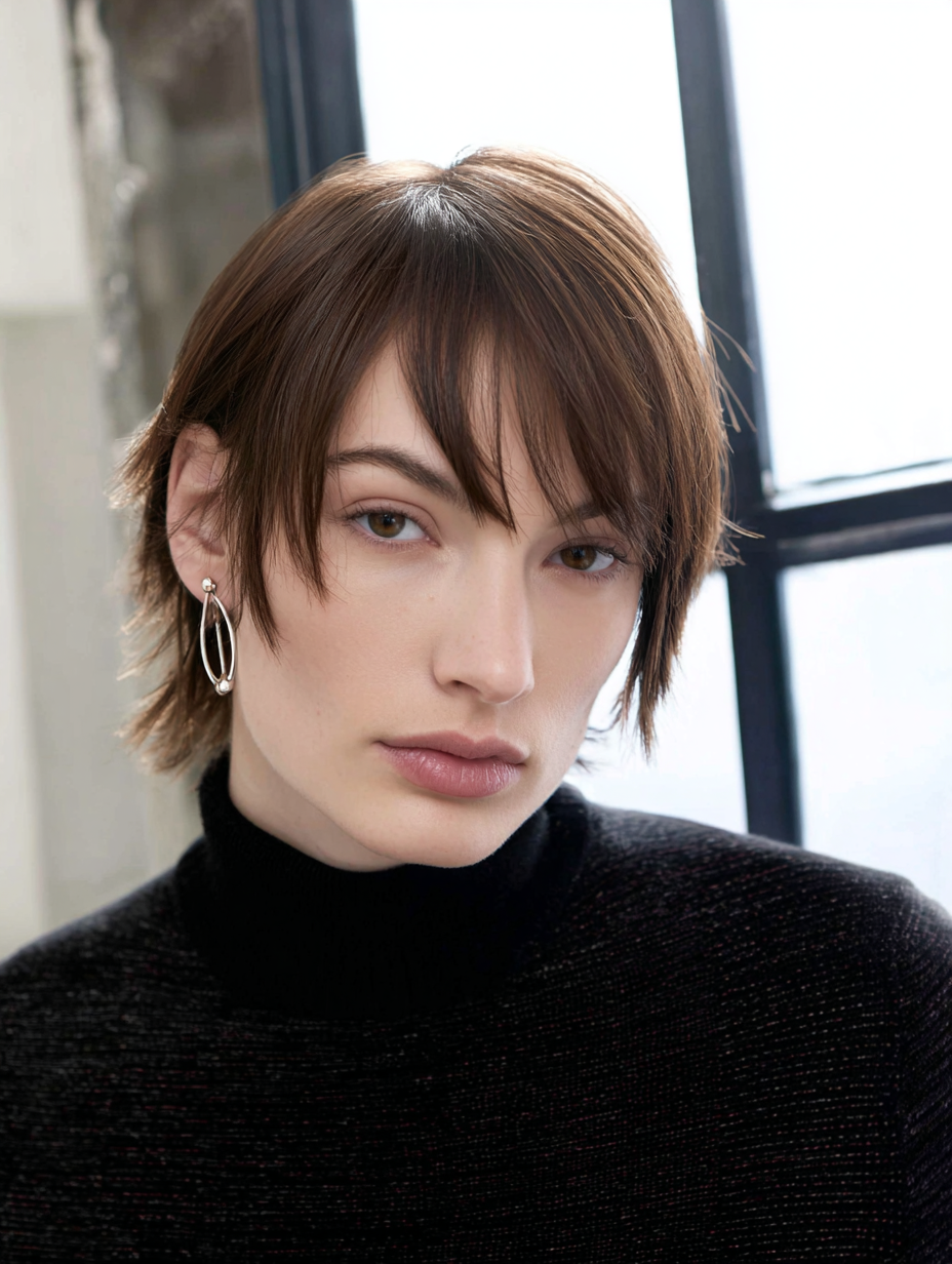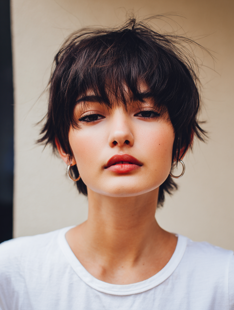 A soft fringe short shag gives fine hair a fuller, more balanced look without harsh lines.