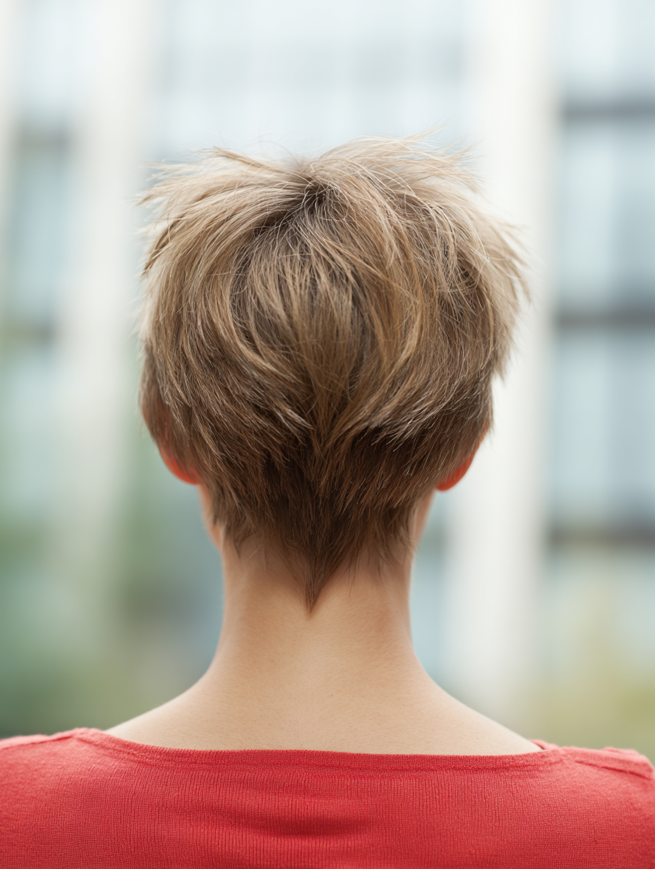 A rounded short shag gives fine hair a fuller silhouette from every angle.