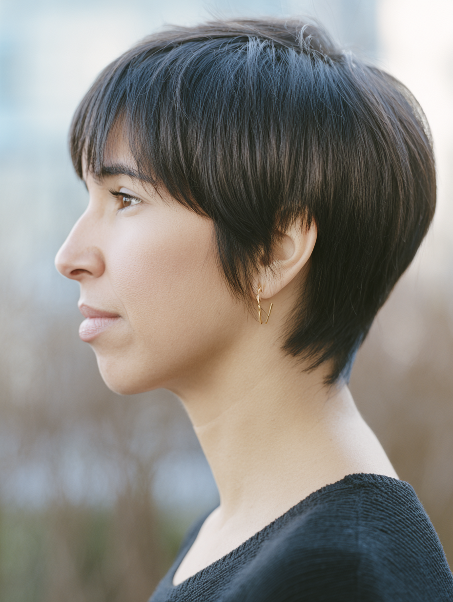 Fine hair benefits from the contrast between the fuller crown and neat neckline. Layers are feathered to avoid bulk buildup.
