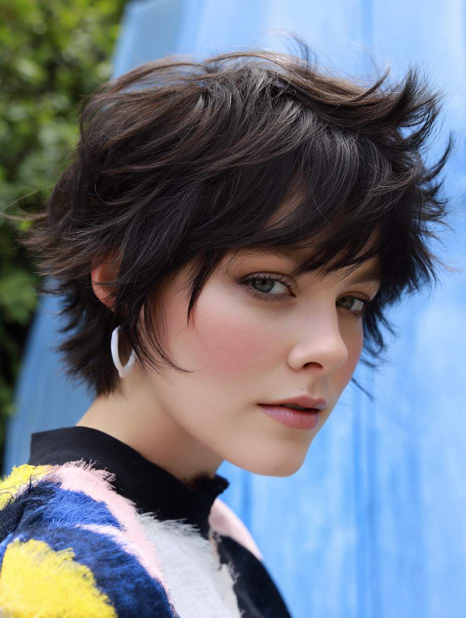 This cut blends pixie length with shag-style texture, giving airiness and personality from front to back.
