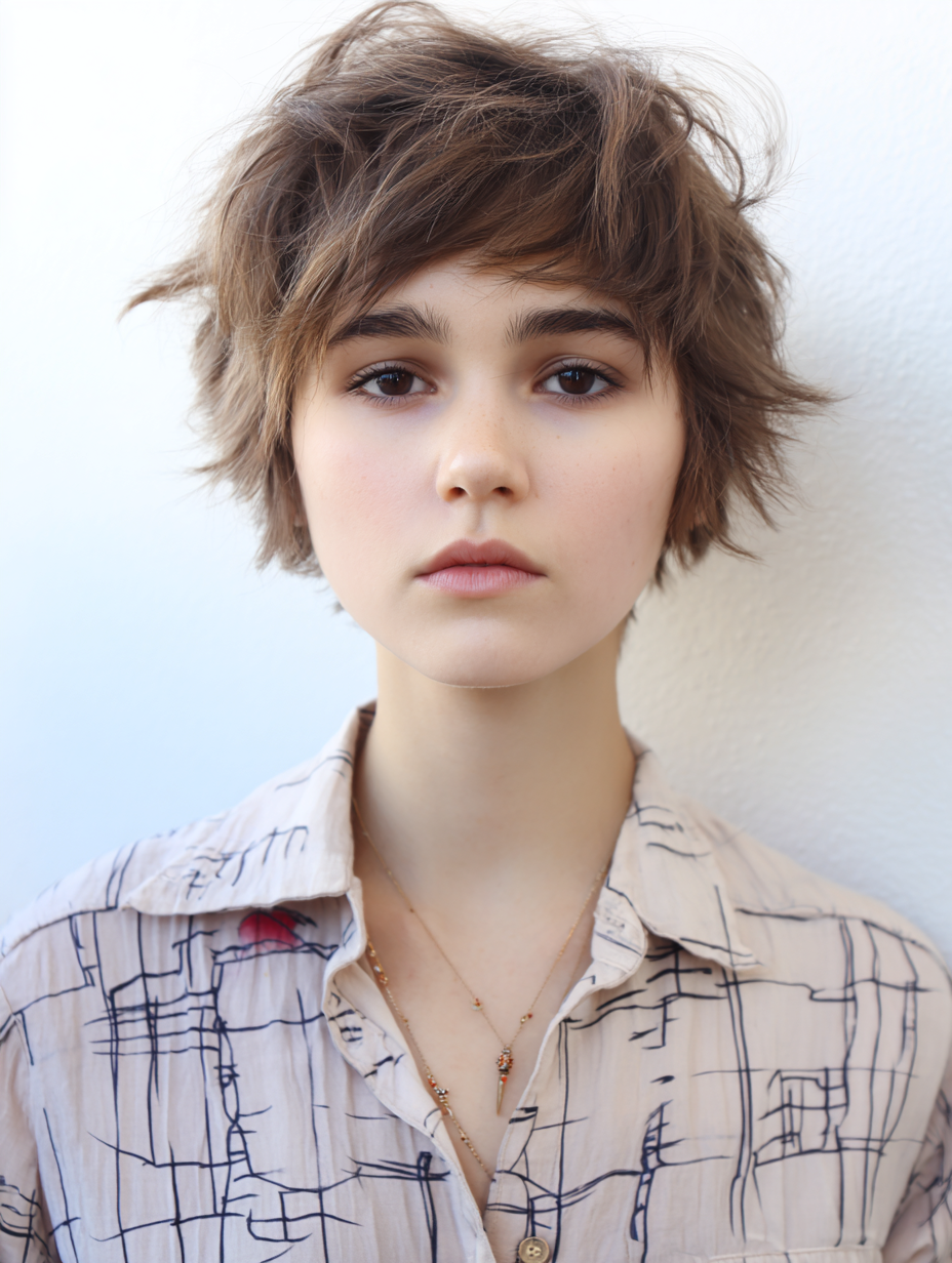 This shaggy pixie adapts easily to weather, busy mornings, or last-minute outings, needing only a touch of mousse to encourage movement.