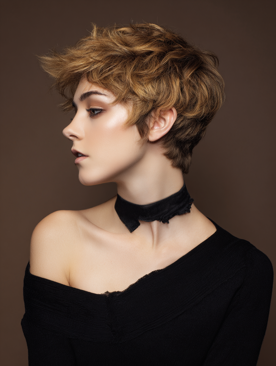 Lifted edges around the crown and neckline give this textured pixie a bold energy that feels youthful and confident.