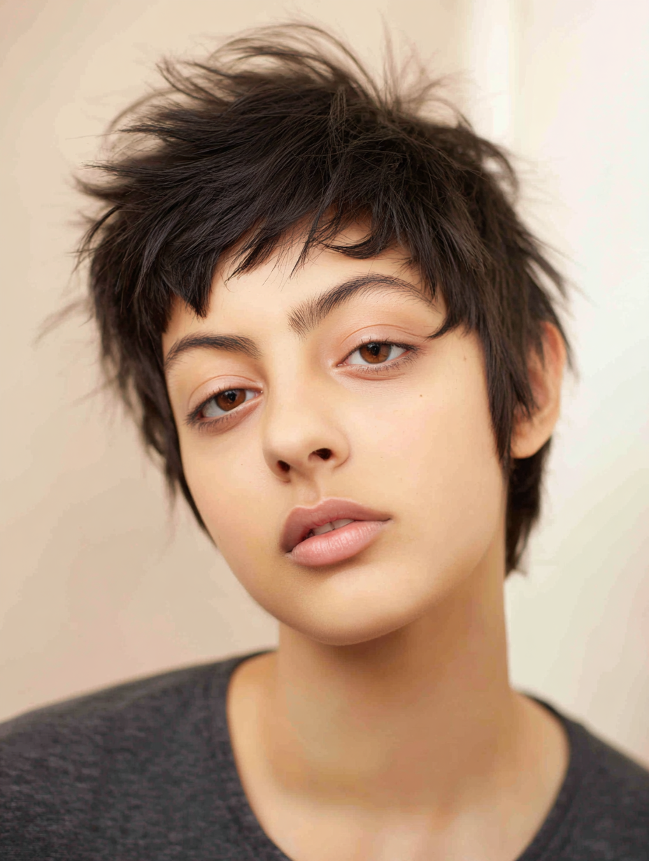 This shaggy pixie blends casual texture with polished styling, letting you switch between messy and sleek depending on the moment.