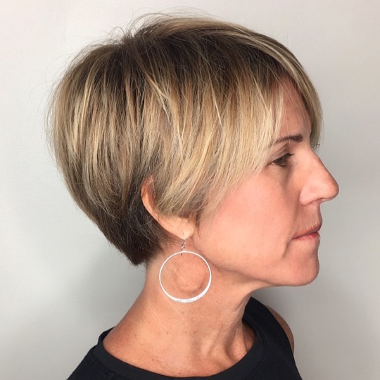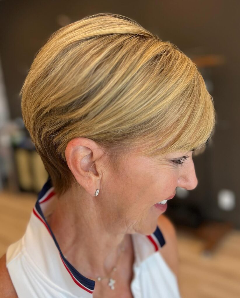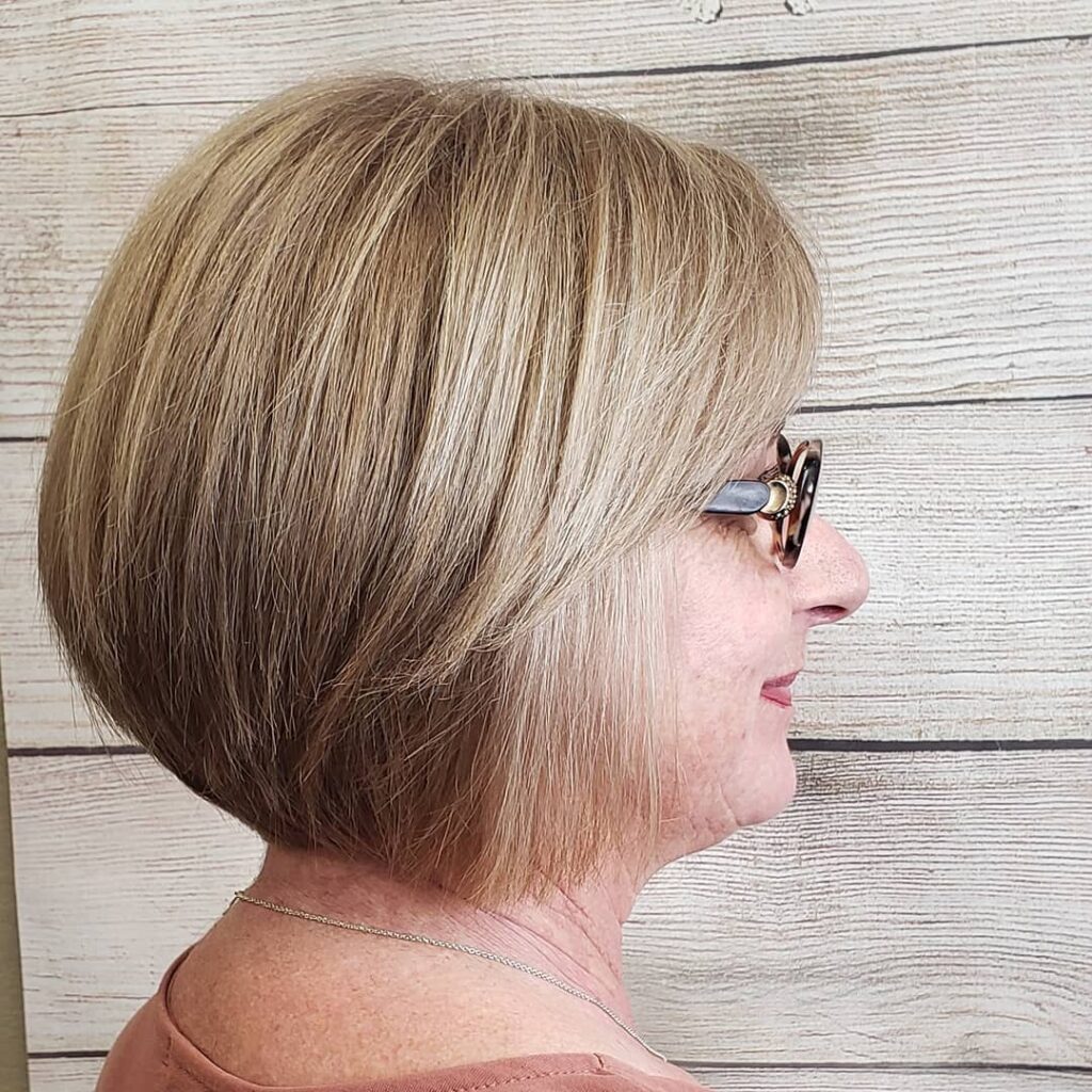 Light layering at the back adds movement, while the sleek sides maintain a neat finish. This cut is perfect for mature women wanting a stylish, low-maintenance look with modern flair.