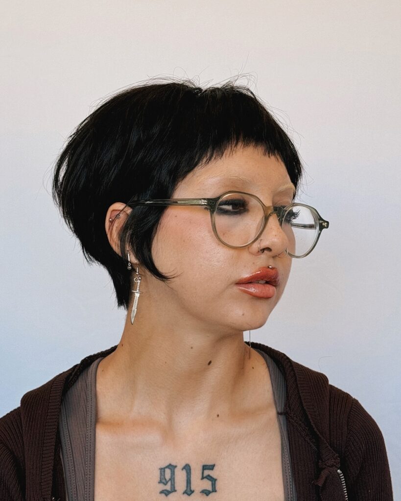Edgy Stacked Bob with Micro Bangs and Wispy Ends