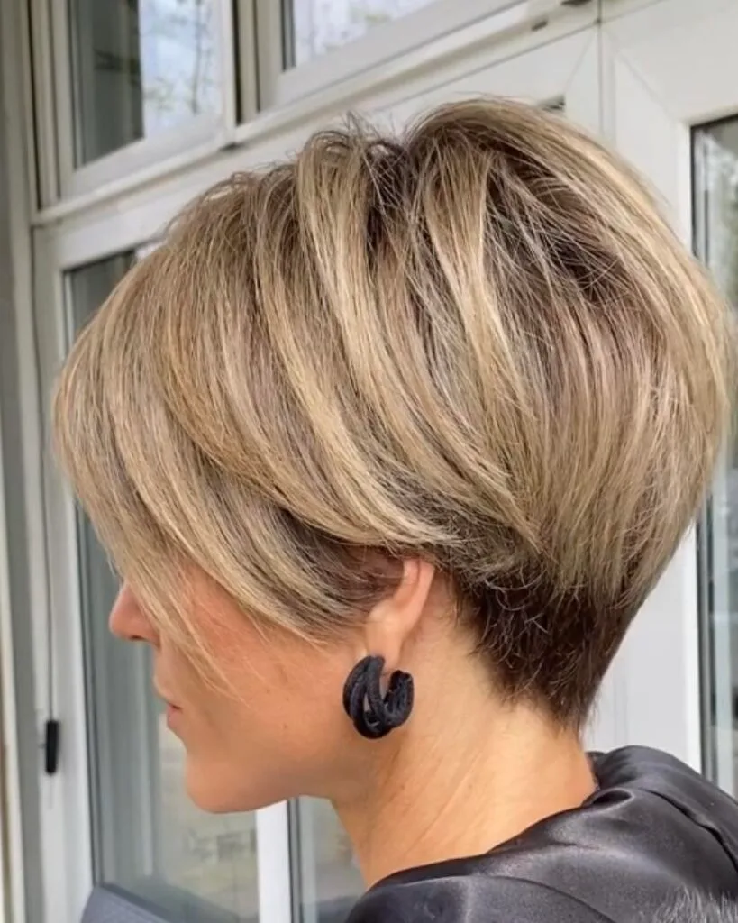 The short stacked bob is a modern classic known for its angled shape and voluminous back. It’s perfect for women who want a stylish, low-maintenance haircut that adds body and movement.