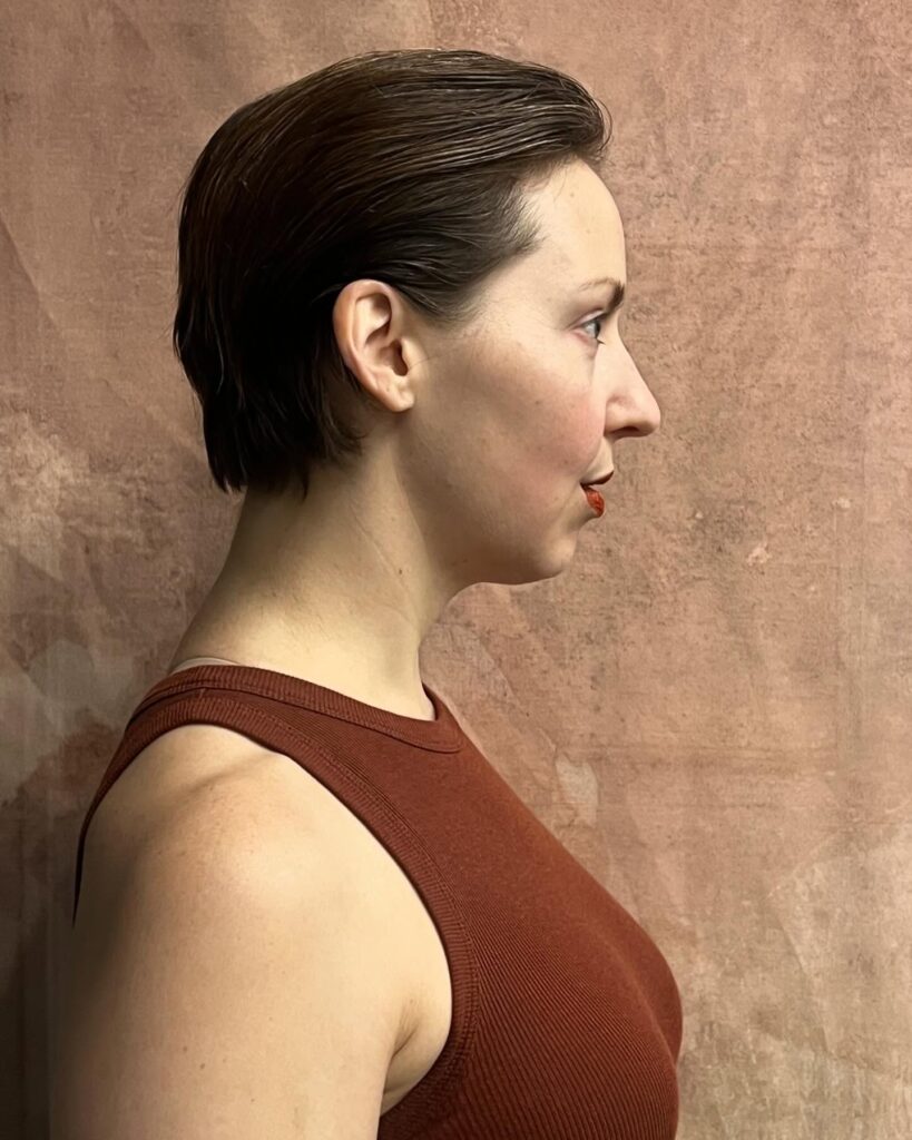 This look works well for showcasing facial features and suits both professional and high-fashion settings. With its bold simplicity, it’s perfect for those who love sleek styles with a striking, no-fuss attitude.