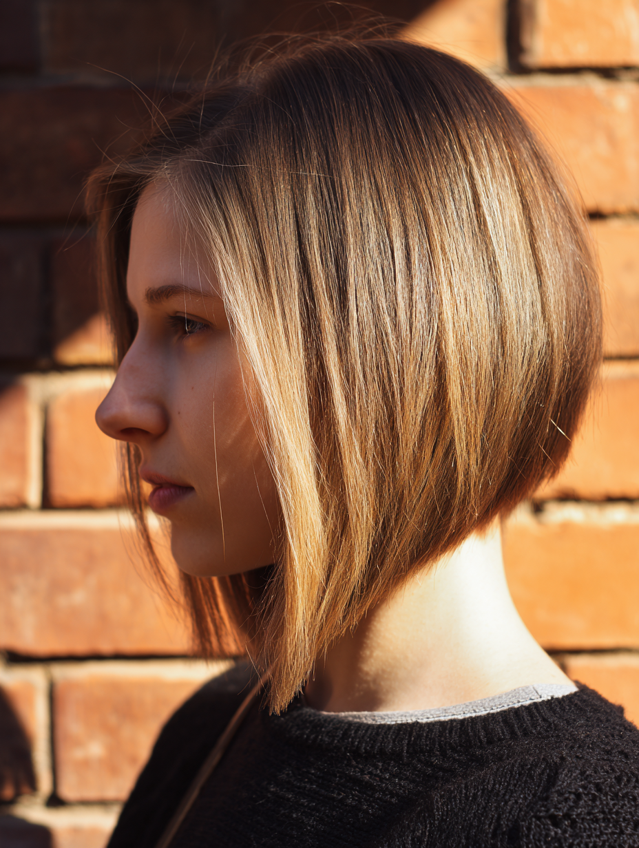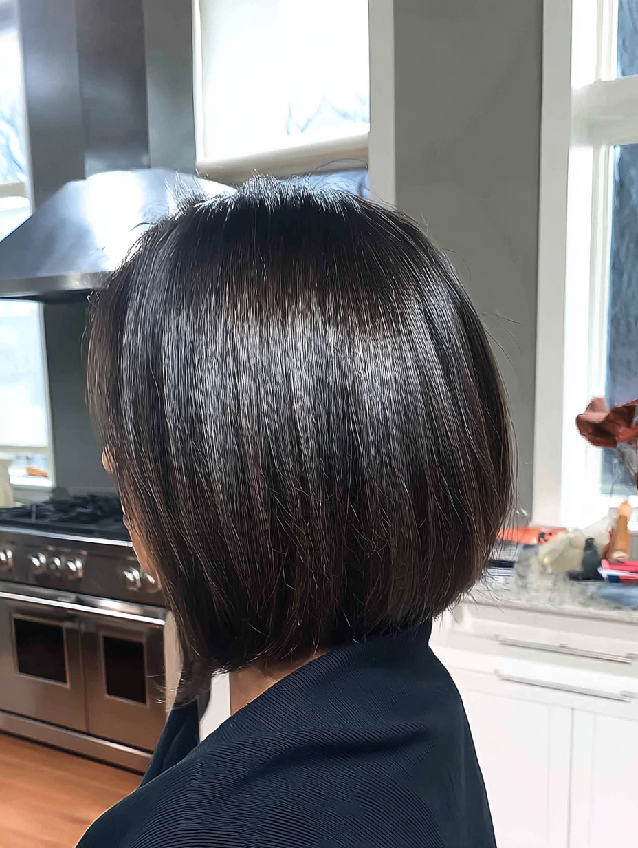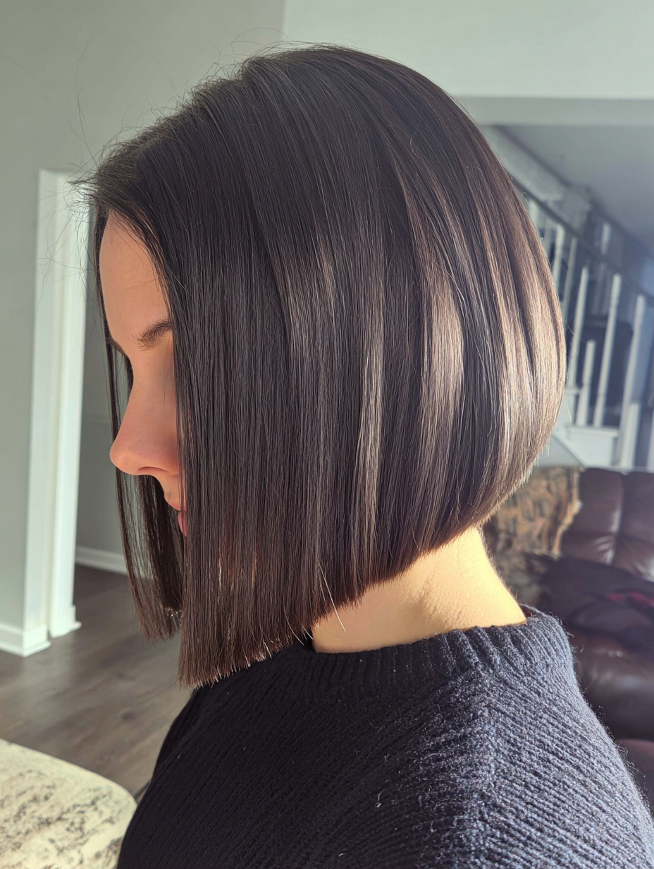 A sleek stacked bob offers a smooth and polished finish that highlights the clean layers. The stacked back adds height while the sleek front creates a sharp outline.