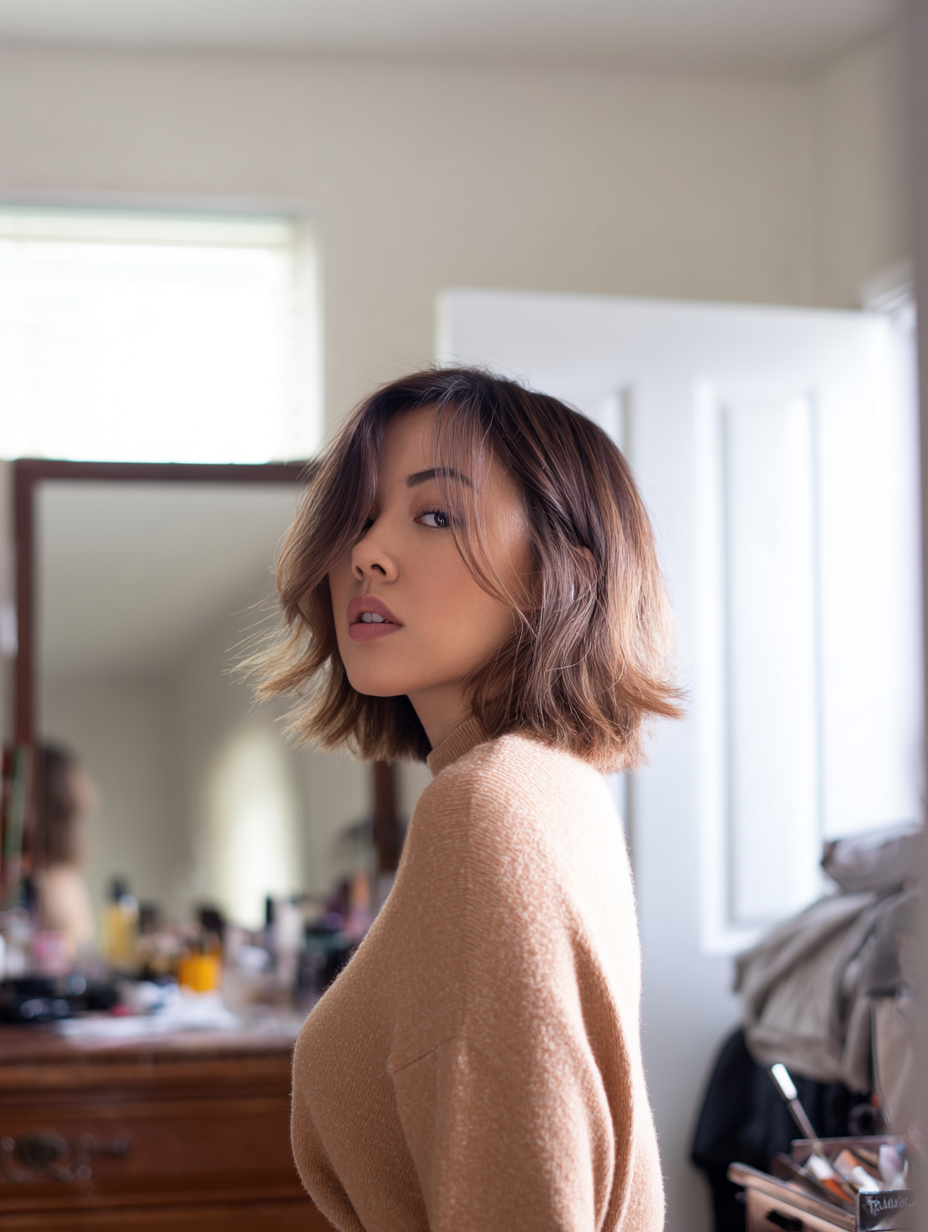 It also frames the face softly, which adds a gentle lift. This cut works well for anyone who wants a simple style that stays consistent throughout the day.