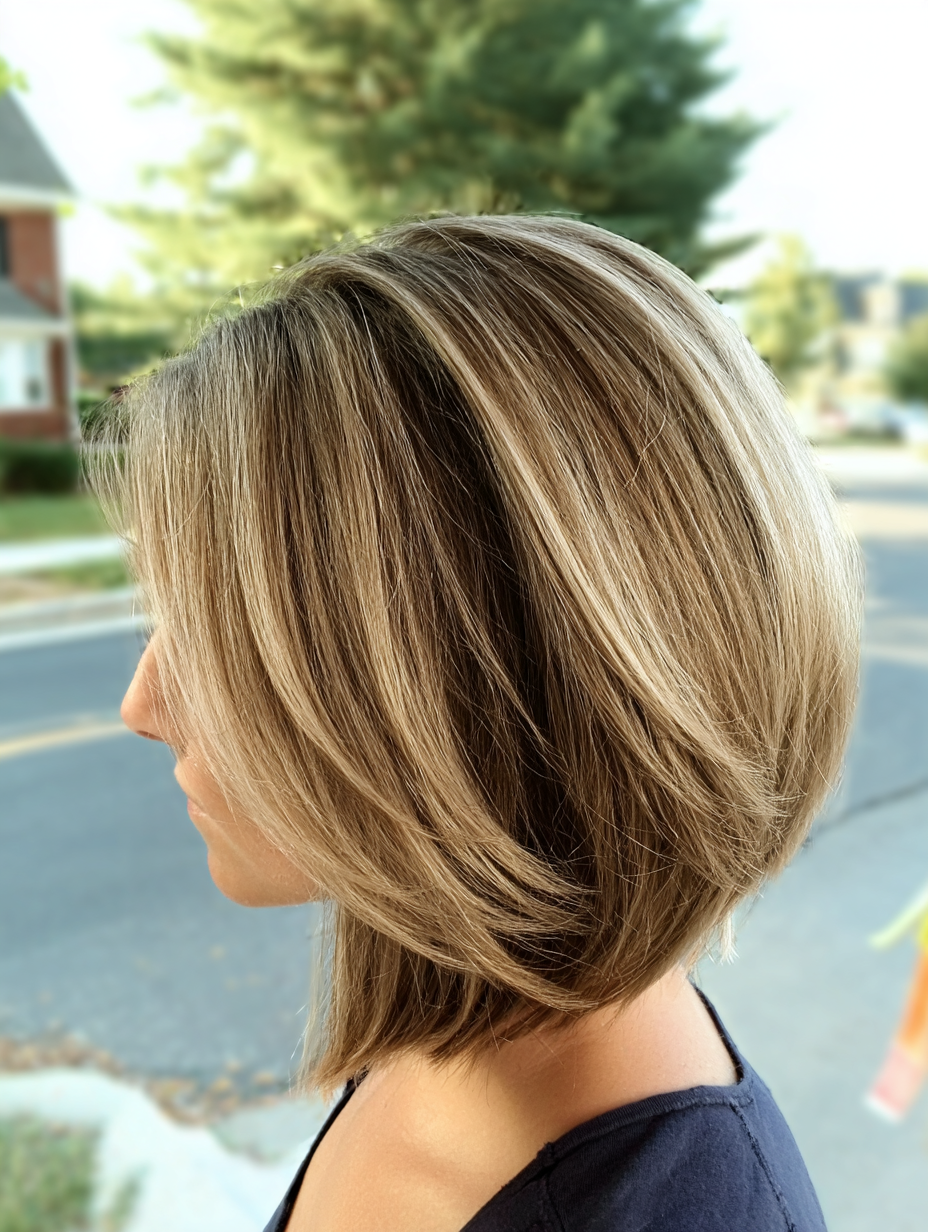 The stacked back supports the shape and keeps the style from falling flat. This cut works well for anyone who wants a relaxed look that stays easy to style throughout the week.