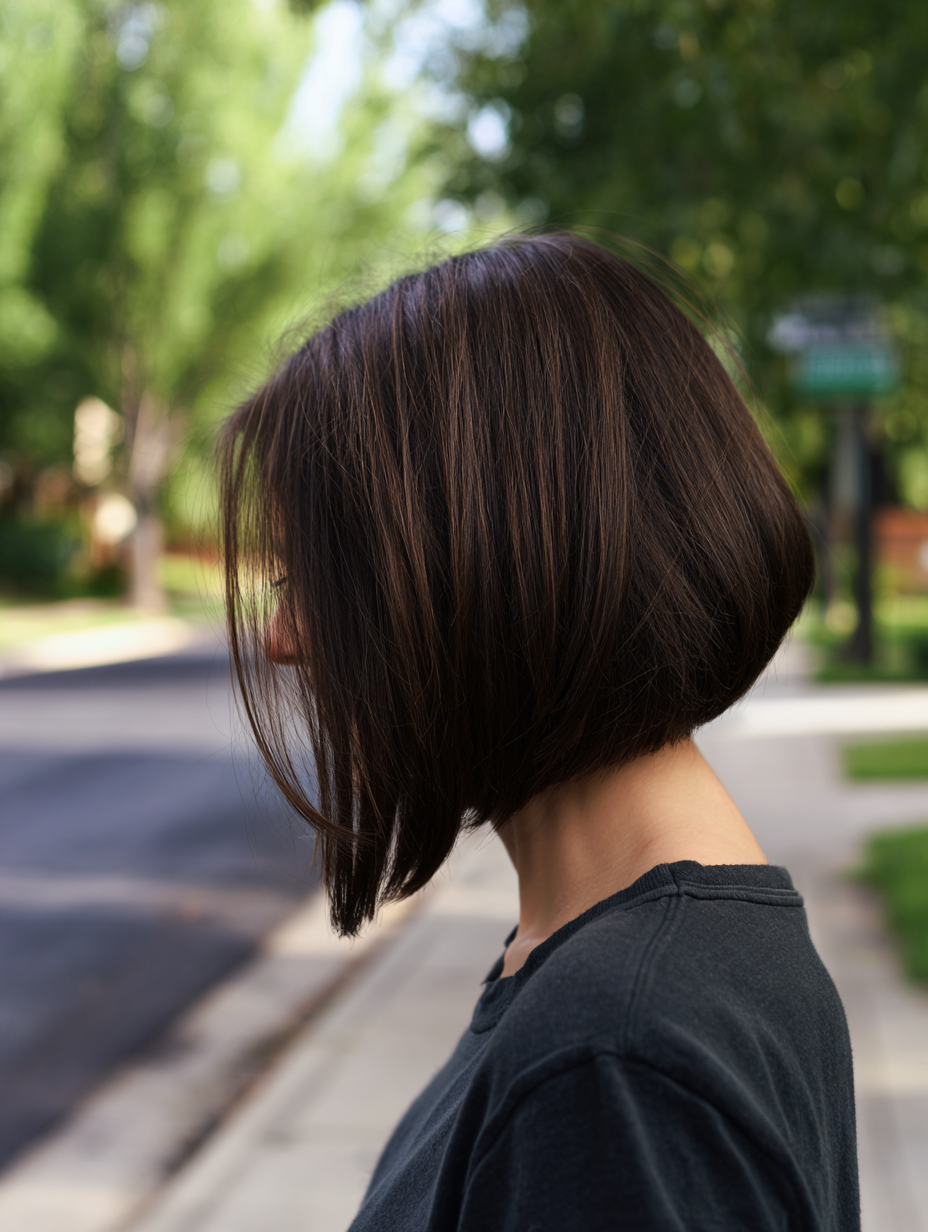 The blunt edges create a clean outline that feels modern. Many women choose this haircut when they want something neat and strong without adding unnecessary volume.