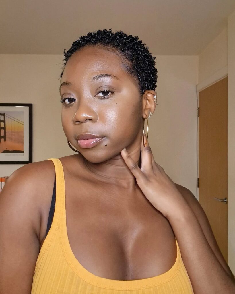 The clean hairline and subtle baby hairs enhance the overall neatness of the style. It’s a soft and elegant take on the classic TWA, perfect for showcasing your natural texture with minimal effort. This style balances simplicity with a refined and radiant appearance.