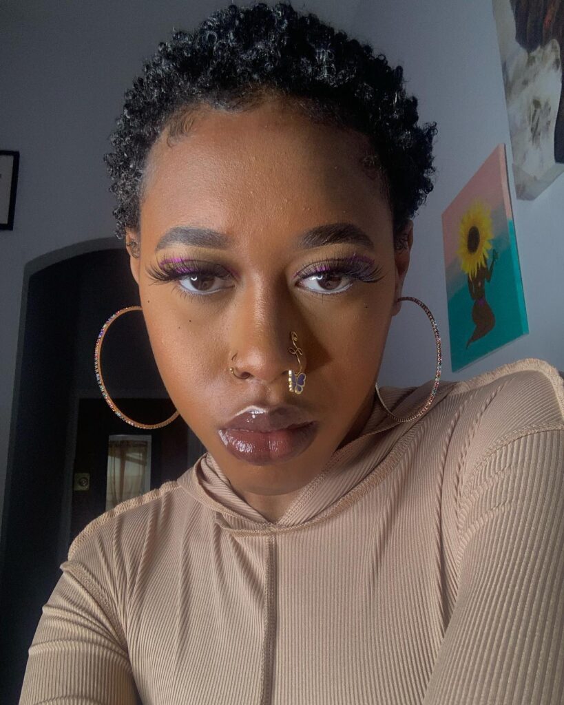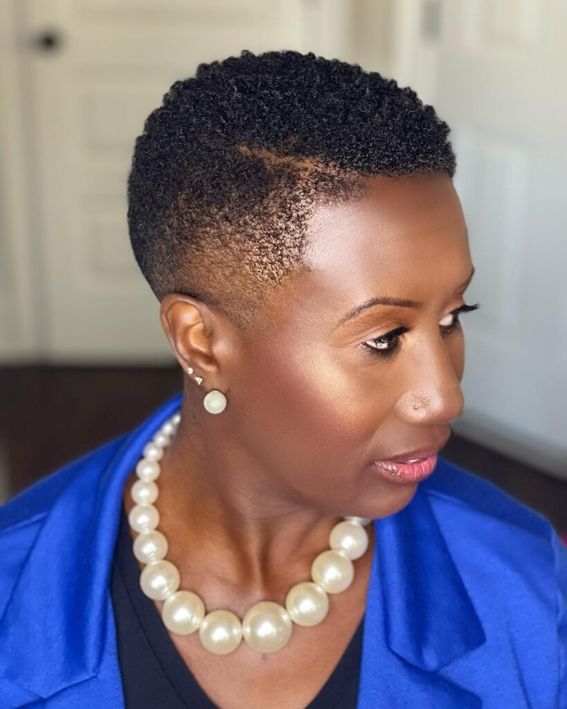 This ultra-short TWA takes creativity to the next level with intricate razor designs carved into the sides and back.