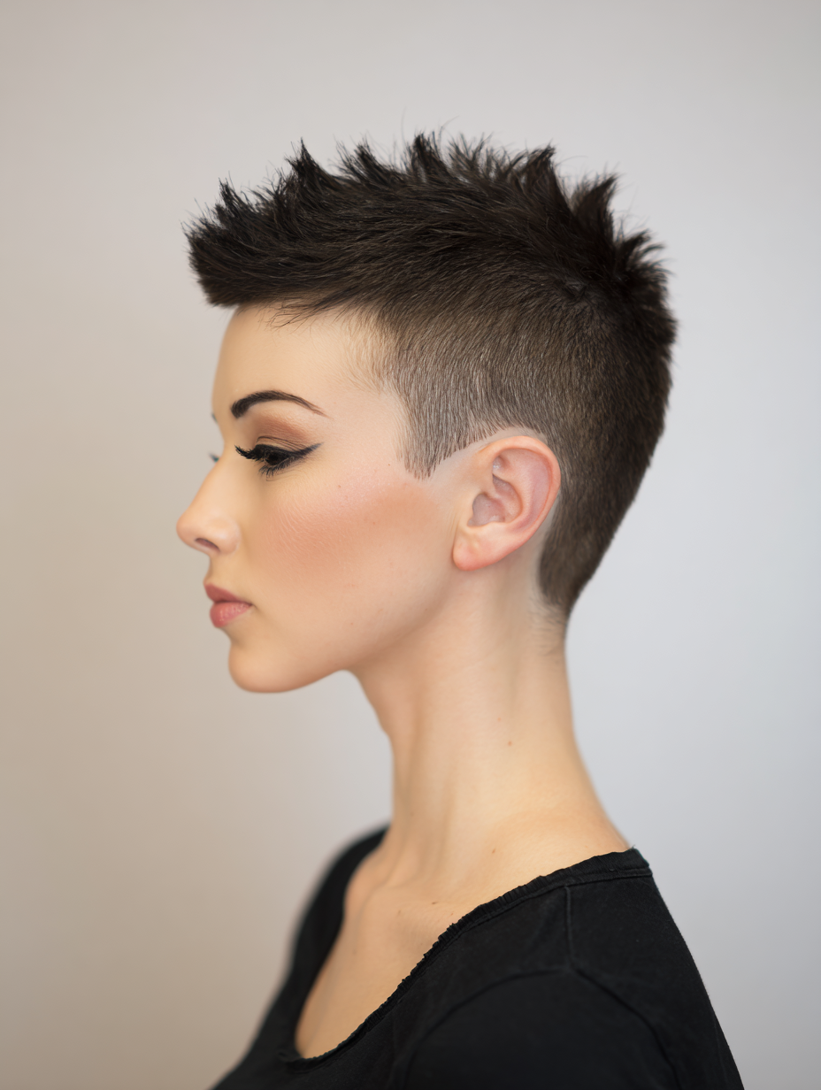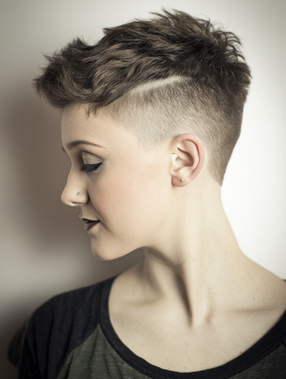A very short pixie haircut with shaved sides delivers a bold, edgy look that stands out with confidence and attitude.