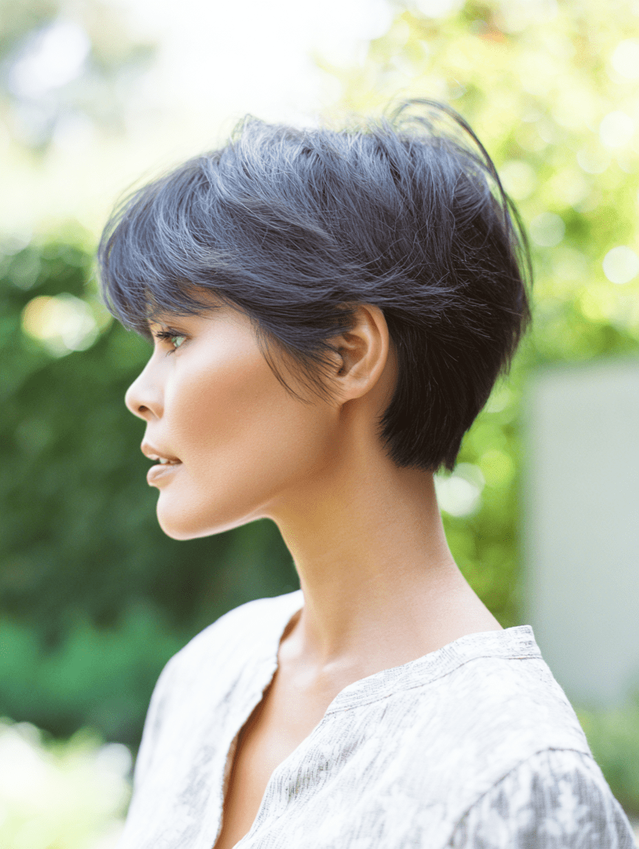A long pixie focuses volume at the crown while keeping the overall cut lightweight.