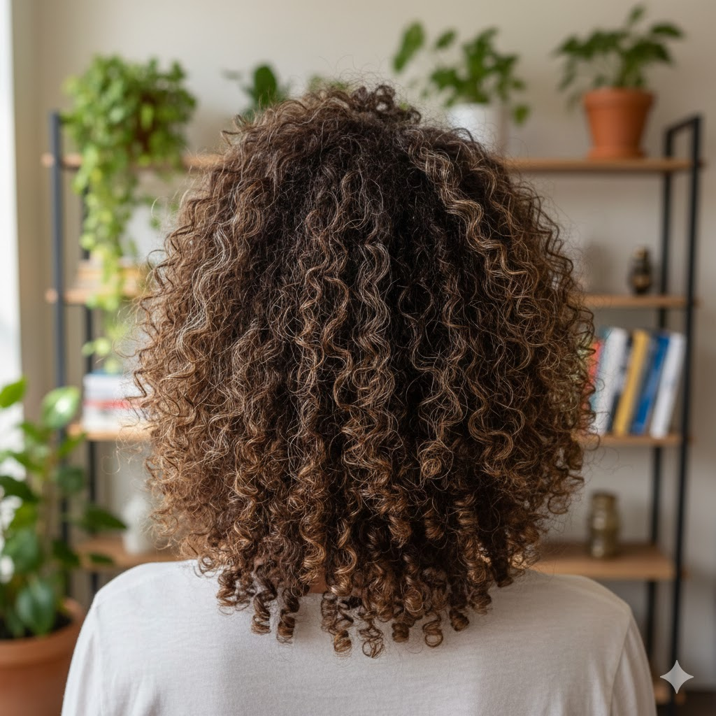 The overall effect adds depth and texture while keeping the curls full and lively.